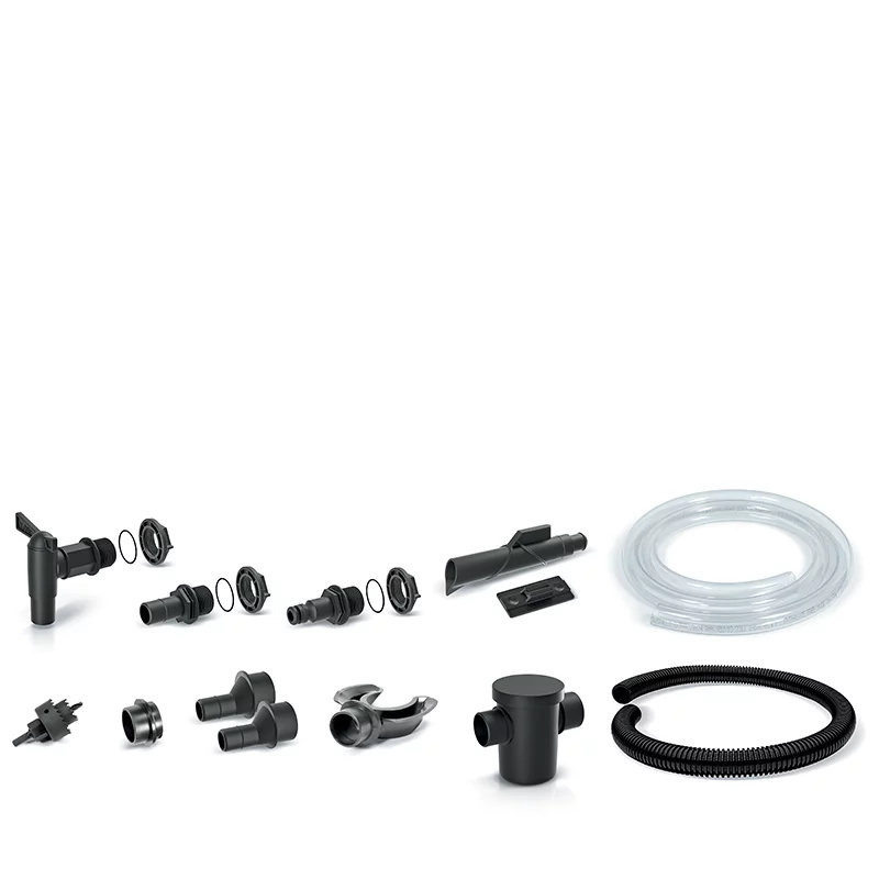 Zestaw składa się z 13 elementów: otwornica ; kranik; uniwersalne przyłącza; wąż ogrodowy; wylewka; wieszak; reduktor; wąż; filtr zewnętrzny; łapacz.
