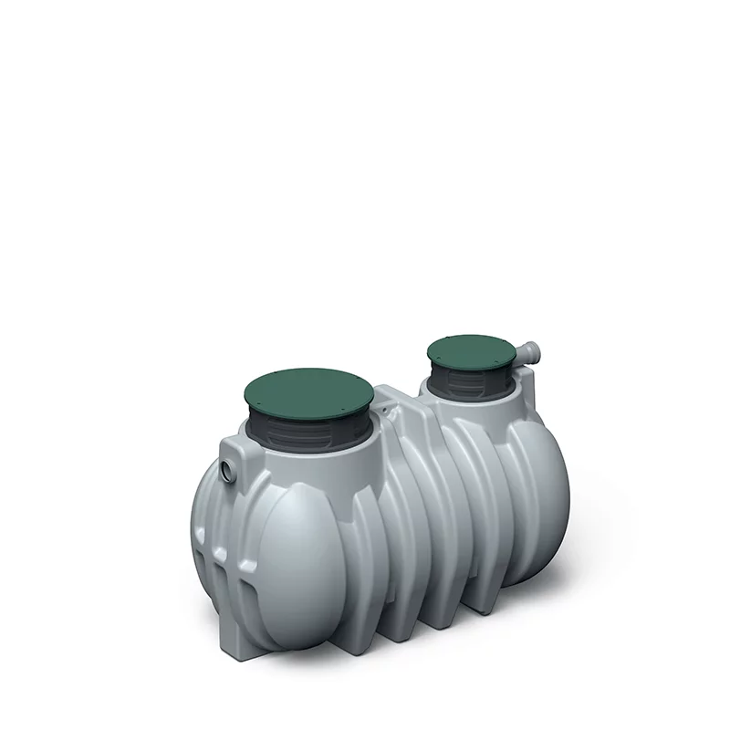 Podziemny zbiornik na wodę deszczową Unground R-2000 o pojemności 2000 litrów pomaga w proekologicznym wykorzystaniu wody opadowej w ogrodzie lub w pracach przydomowych. Wykonany jest z materiałów zapewniających szczelność na długie lata oraz dużą wytrzymałość dzięki konstrukcji wzmocnionej pionowymi żebrowaniami. Produkowany jest z wysokiej jakości tworzywa w najbardziej zaawansowanej technologii, zapewniającej sztywność, ultrawytrzymałość, odporność na niskie i wysokie temperatury. W górnej części zbiornika znajdują się dwa okrągłe włazy rewizyjne (o średnicy 400 i 600 mm) z nadstawkami i pokrywami zabezpieczonymi przed otwarciem. W nadstawce mniejszego włazu zamocowana jest rura dopływowa PCV o średnicy 110 mm z sitem filtracyjnym. Pod nadstawką większego włazu, znajduje się część wylotowa z odpływem składającym się z rury PCV o średnicy 110 mm wraz syfonem złożonym z 3 kolan PCV 110 mm oraz rury. Zbiorniki przystosowane są do instalacji pomp zanurzeniowych dla zbudowania zautomatyzowanego systemu zagospodarowania wody deszczowej. Dla ułatwienia transportu zbiornik wyposażony jest w uchwyty transportowe, zaś w dolnej części znajdują się wgłębienia na widły wózka widłowego. Produkując zbiorniki na wodę deszczową i kompostowniki wspieramy działania przyczyniające się do ochrony środowiska. Wykorzystujemy tworzywa pochodzące z recyklingu, a wszystkie nasze produkty nadają się w 100% do powtórnego przetworzenia.