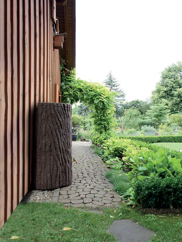 - Dzięki swojemu specjalnemu wzornictwu zbiorniki na deszczówkę doskonale integrują się z naturalnym środowiskiem Twojego ogrodu