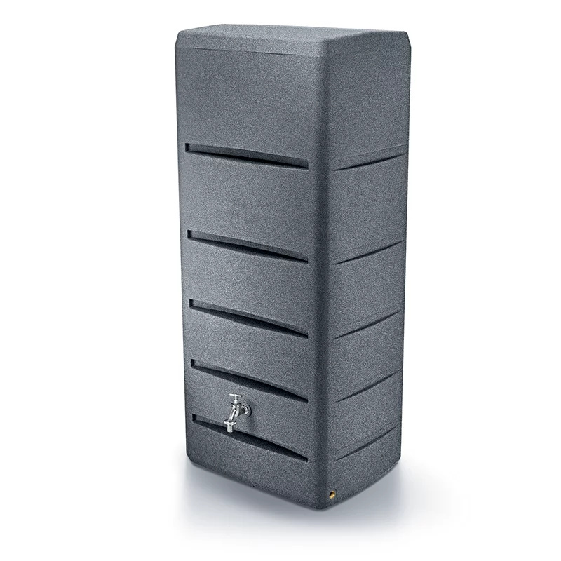 Zbiornik Tower o pojemności 260 oraz 720 litrów, to designerski i funkcjonalny zasobnik na wodę deszczową, którego struktura inspirowana tynkiem ma atrakcyjny wygląd, który wkomponowuje się otoczenie domu łącząc się z detalami architektonicznymi. Produkowany jest z wysokiej jakości tworzywa w najbardziej zaawansowanej technologii, zapewniającej sztywność, ultrawytrzymałość, odporność na niskie i wysokie temperatury oraz na promieniowanie UV. W dolnej części zbiornika znajdują się otwory odpływowe wyposażone w mosiężne gwinty 3/4". Najniższe otwory spustowe służą do opróżnienia zbiornika na zimę lub do połączenia kilku zbiorników w większy system za pomocą zestawu przyłączeniowego Icanset8. Do napełniania zbiornika wodą z systemu rynnowego zaprojektowano przyłącza Icanset oraz filtry rynnowe. W zestawie znajduje się kranik Cantap ITAP2. Produkując zbiorniki na wodę deszczową i kompostowniki wspieramy działania przyczyniające się do ochrony środowiska. Wykorzystujemy tworzywa pochodzące z recyklingu, a wszystkie nasze produkty nadają się w 100% do powtórnego przetworzenia.