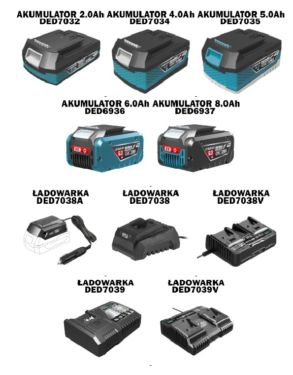 Dane techniczne akumulatorowej szczotki do kostki brukowej DED7098: