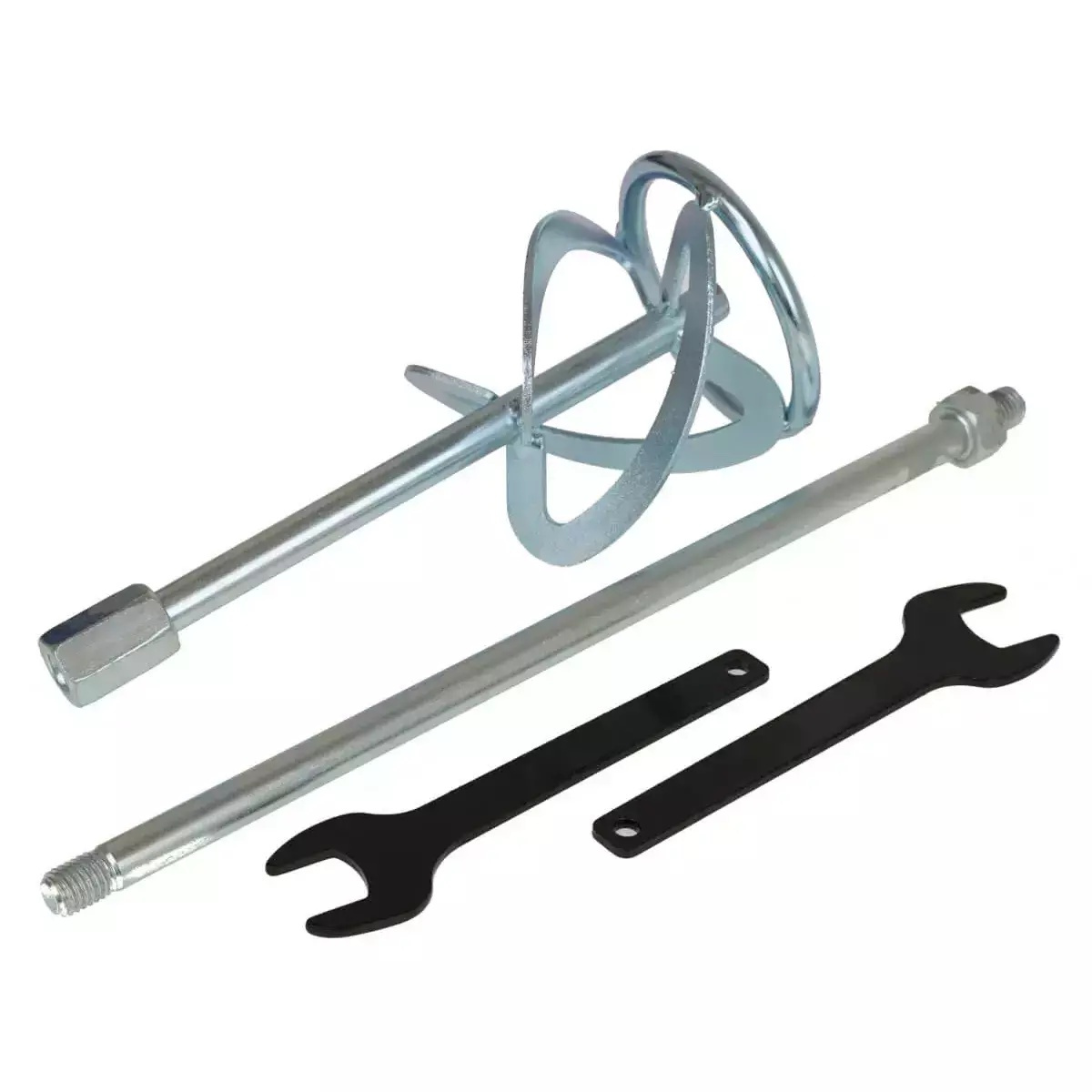 To urządzenie przeznaczone do mieszania materiałów płynnych (farby, grunty) oraz materiałów sypkich (kleje, zaprawy, tynki). Mieszadło posiada dwa biegi, które pomagają dostosować prędkość obrotową do mieszanego materiału. Mocowanie mikserów odbywa się za pomocą uniwersalnego gwintu M14. Wygodne uchwyty pokryte są antypoślizgową gumą.
