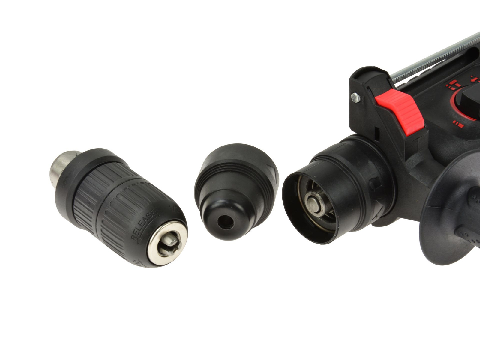 - w zestawie głowica SDS+ oraz głowica szybkozaciskowa, zestaw wierteł i dłut oraz smar