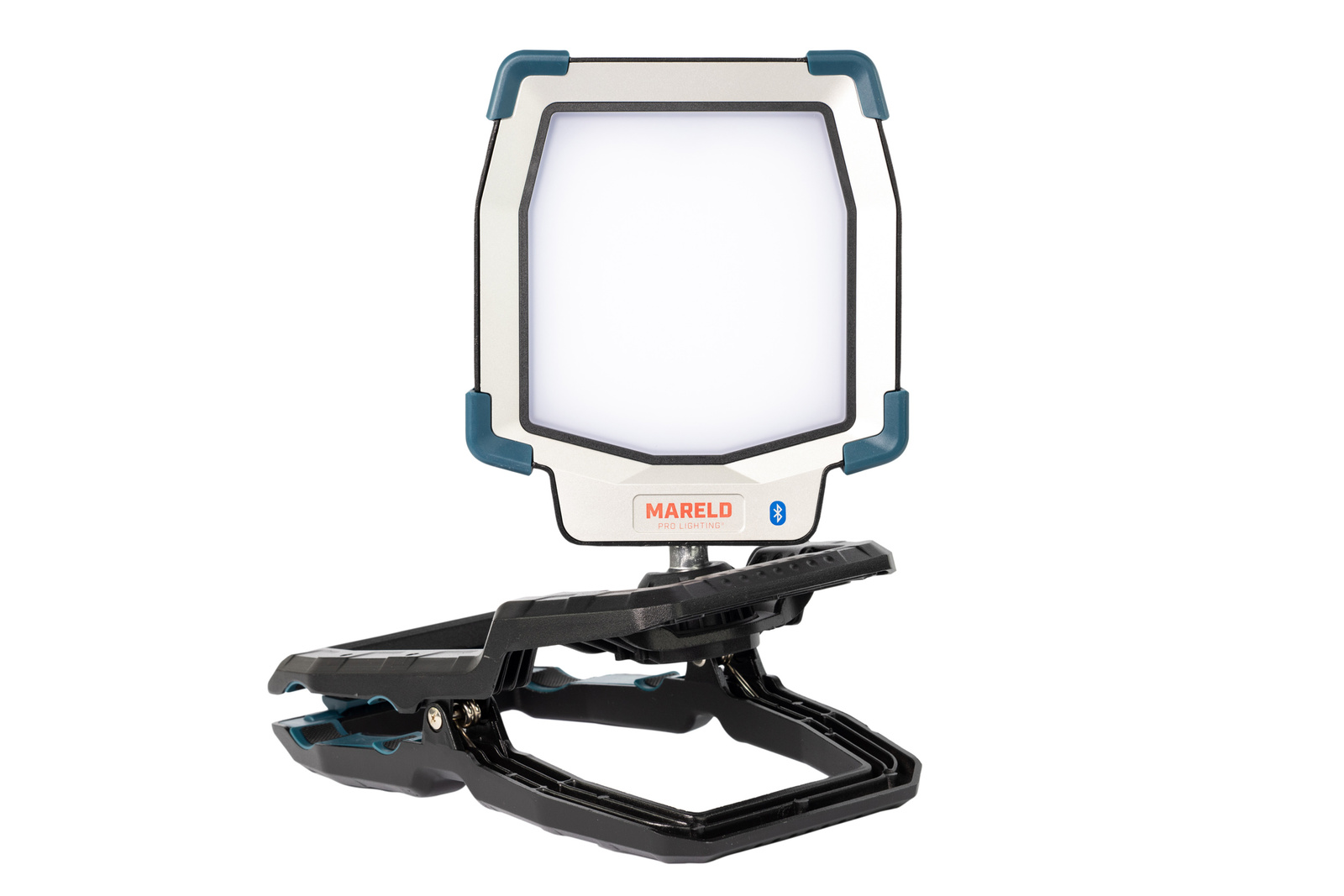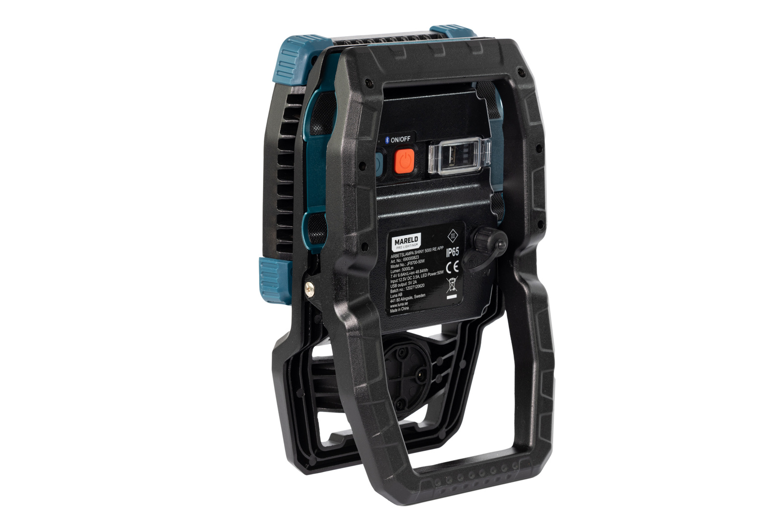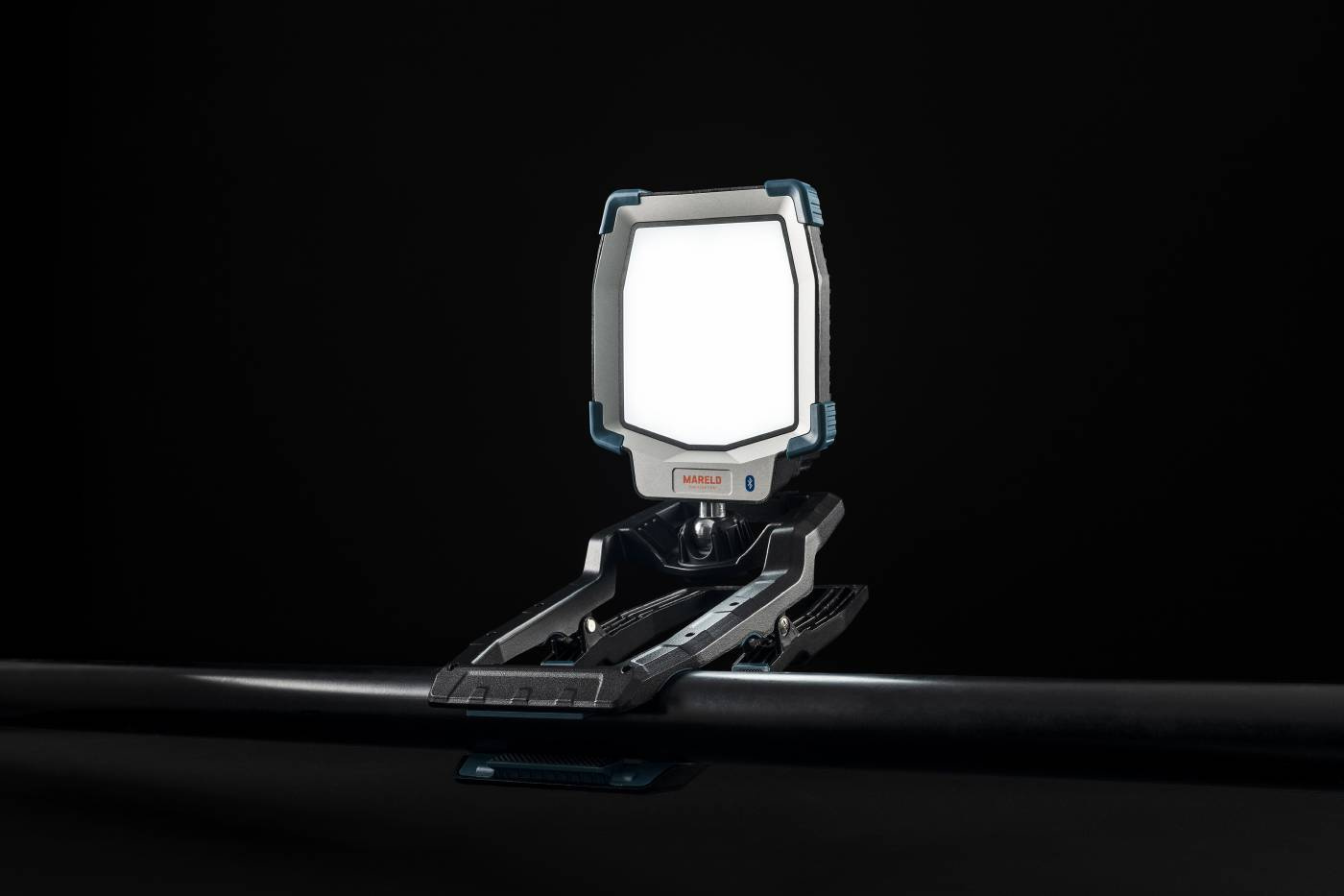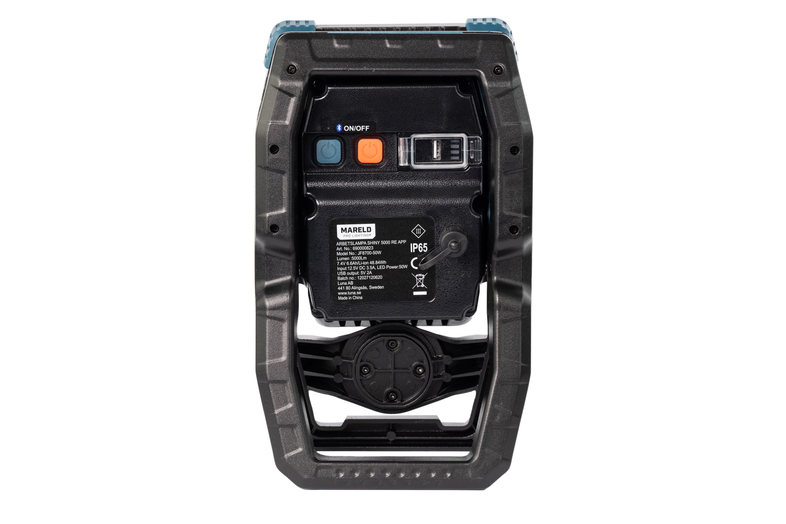 Lampa robocza Mareld Shiny 5000 RE APP to wyjątkowa akumulatorowa lampa o intensywnie jasnym świetle i mocy 50 W. Praktyczność i użyteczność lampy 690000823 Mareld zapewnia uchwyt umiejscowiony w dolnej części urządzenia, który pozwala na montaż do rur, blatów oraz elementów wszelkiego rodzaju maszyn.