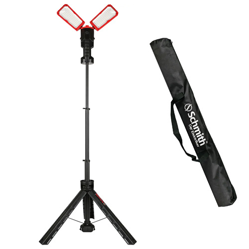 Lampa LED na statywie o mocy 2x50W marki Schmith to idealne rozwiązanie do oświetlenia miejsc pracy na budowie, w warsztacie oraz w trudnych warunkach terenowych. Wyposażona w dwie głowice z 144 diodami LED każda, lampa oferuje regulowany poziom mocy – przy 50% wydajności zapewnia jasność 2x2500 lumenów, a przy pełnej mocy 2x5000 lumenów. Dzięki możliwości regulacji temperatury barwowej w trzech ustawieniach (3000K, 4500K, 6500K), można dostosować światło do potrzeb – od ciepłej, pośredniej, po zimną barwę.