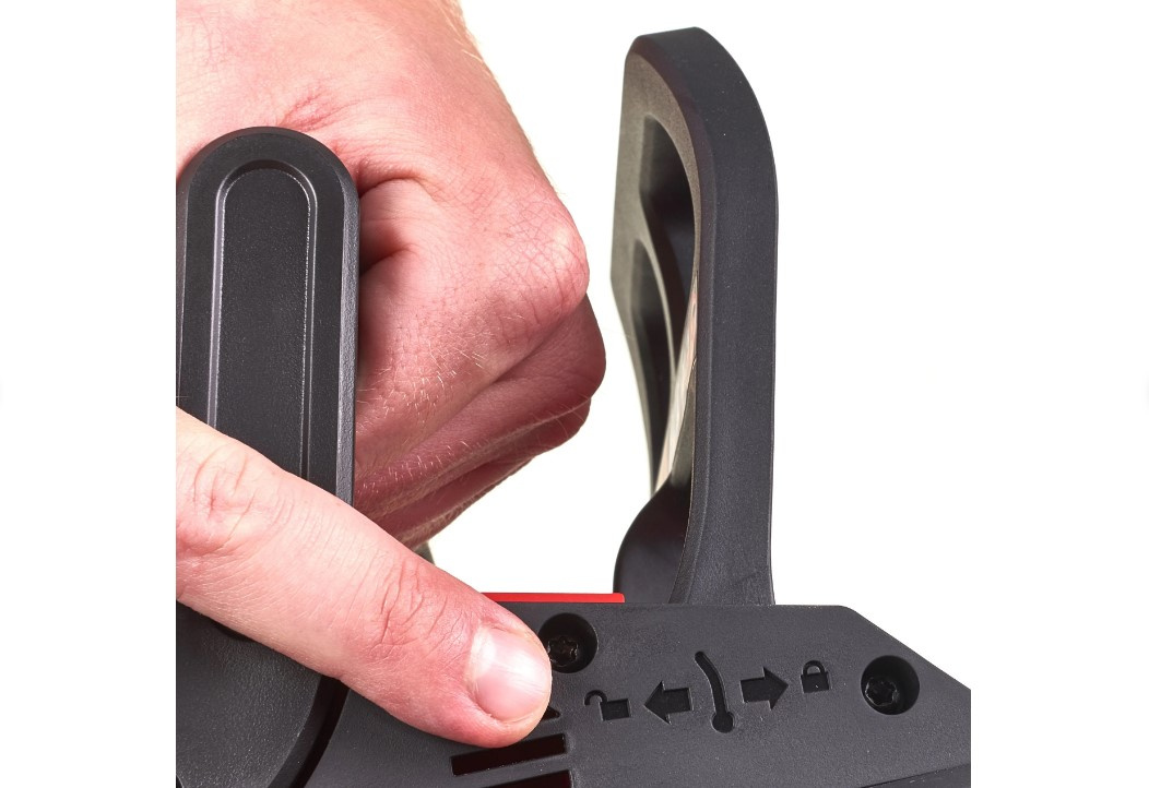 - Włącznik spustowy z regulacją prędkości pozwala użytkownikowi na pełną kontrolę nad narzędziem, wyzwaląc natychmiastową reakcję silnika i osiągnięcie maksymalnej prędkości cięcia w niecałą sekundę