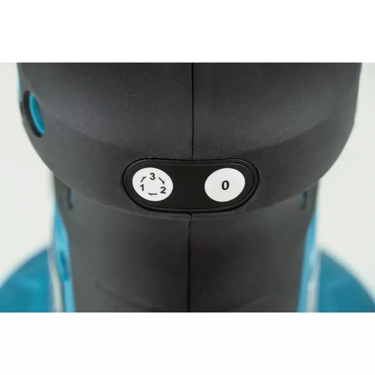 Urządzenie wyposażone jest w silnik bezszczotkowy, którego zaletą jest dużo wyższa sprawność i wytrzymałość niż tradycyjnego silnika szczotkowego. Szlifierka posiada trzy prędkości 6000/8500/11000min, dzięki którym można optymalnie dobrać prędkość do rodzaju wykonywanej pracy. Papiery ścierne o średnicy 125 mm montowane są do dysku z rzepem. Papiery i dysk wyposażone są w otwory poprawiające odsysanie pyłu.