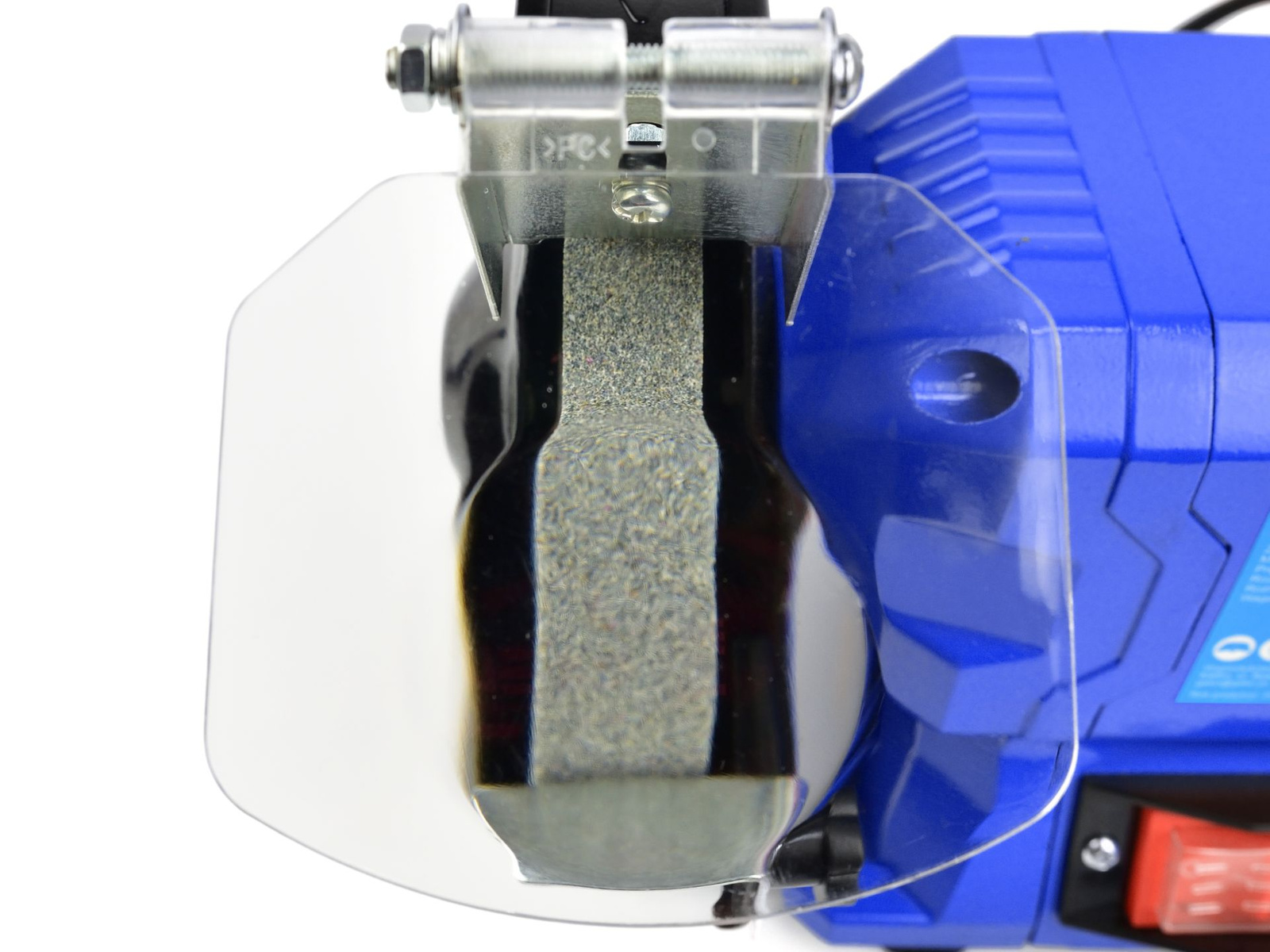 Szlifierka stołowa – taśmowa wyposażona w wydajny silnik elektryczny o mocy 250W. Szlifierka posiada kamień szlifierski o średnicy 150mm i grubości 20mm, mocowany na trzpień o średnicy 12,7mm oraz płozę szlifierską z pasem bezkońcowym o wymiarach 50x686mm. Model przeznaczony wyłącznie do pracy na sucho.