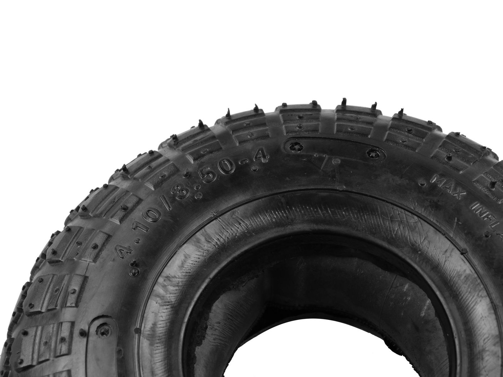 Opona z dętką 4.10 / 3.50 - 4 2PR Opona z dętką 2PR o maksymalnym obciążeniu do 136 kg. Specyfikacja techniczna: Średnica zewnętrzna koła: 260 mm Szerokość opony: 81 mm Średnica wewnętrzna koła: 125 mm Ilość płócien w oponie: 2 Materiał wykonania: guma Maksymalne obciążenie: 136 kg Ciśnienie maksymalne: 2,1 bar / 30 psi Wentyl: samochodowy