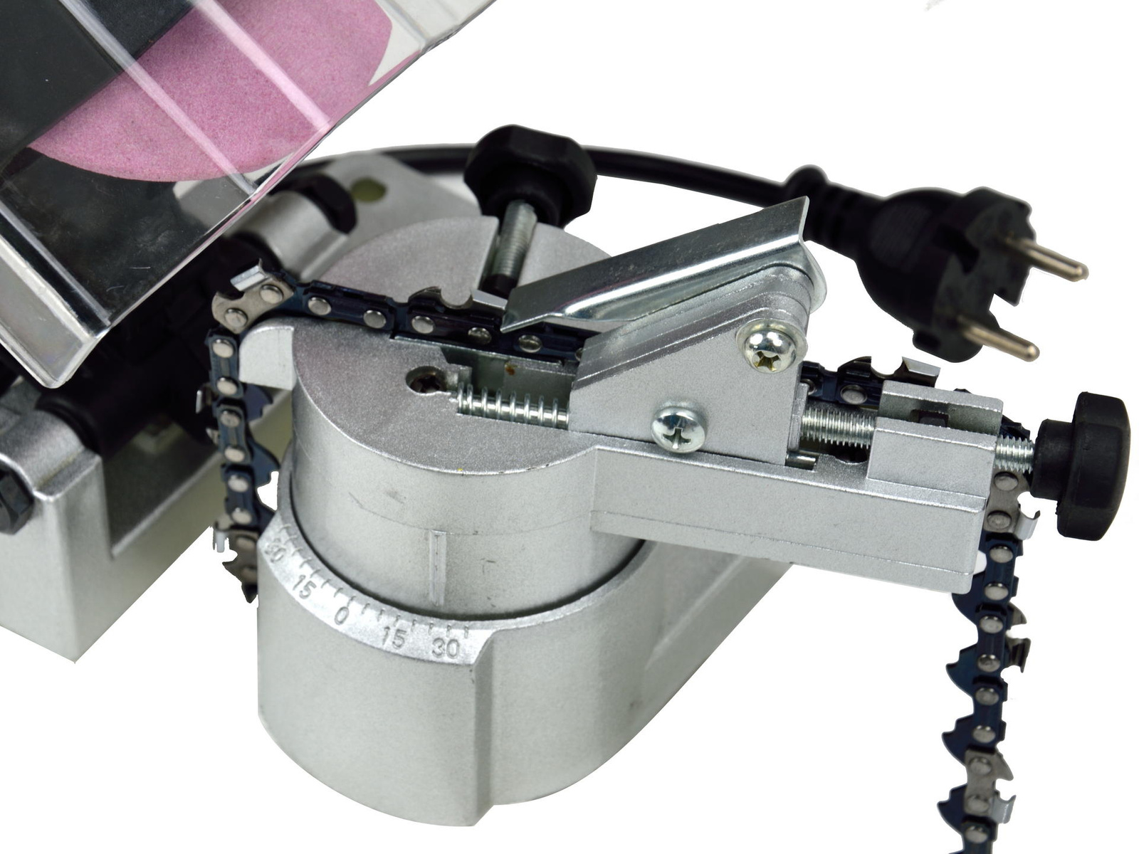 Ostrzałka przeznaczona do szlifowania/ostrzenia łańcuchów pilarek elektryczny i spalinowych. Moc na poziomie 220W i prędkość obrotowa 7500 rpm pozwala szybko osiągnąć oczekiwany efekt. Urządzenie posiada wbudowany napinacz, co w połączeniu z czytelną skalą ostrzenia zapewnia bardzo precyzyjne szlifowanie.