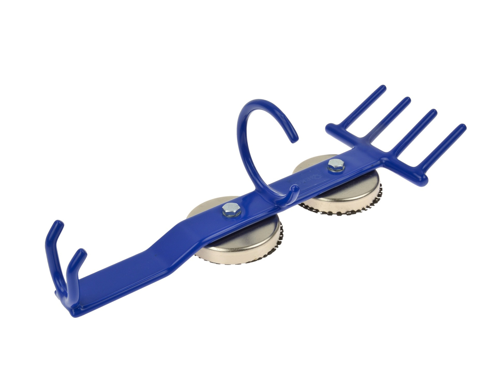 Uchwyt magnetyczny na klucz pneumatyczny, dodatkowo z możliwością zawieszenia 4 nasadek oraz grzechotki. Dane techniczne Wymiary: 400 x 135 x 115 mm Średnica otworu na klucz pneumatyczny: 75 mm Średnica magnesu: 85 mm Udźwig: do 15 kg