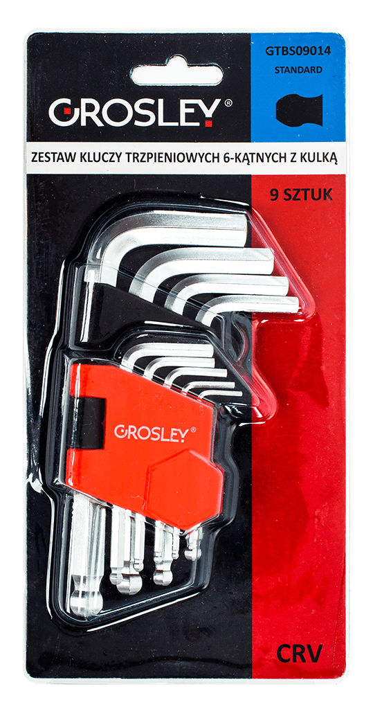 GROSLEY ZESTAW KLUCZY TRZPIENIOWYCH 6-KĄTNYCH Z KULKĄ DŁ. STANDARD - 9 SZT.