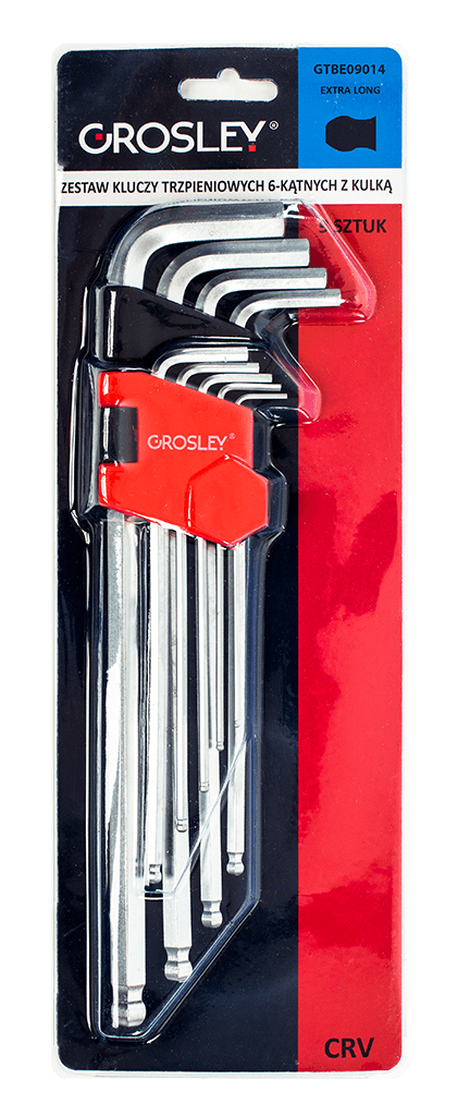 GROSLEY ZESTAW KLUCZY TRZPIENIOWYCH 6-KĄTNYCH Z KULKĄ EXTRA DŁUGICH - 9 SZT.