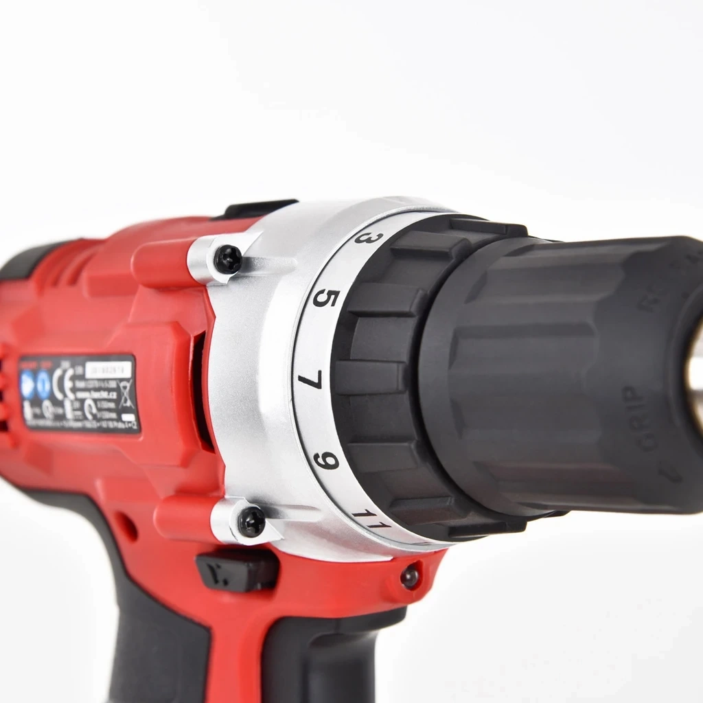W zestawie: 2 akumulatory, ładowarka (1h), bity 6 szt., wiertła 6 szt., magnetyczny uchwyt bitów, walizka z tworzywa sztucznego.
