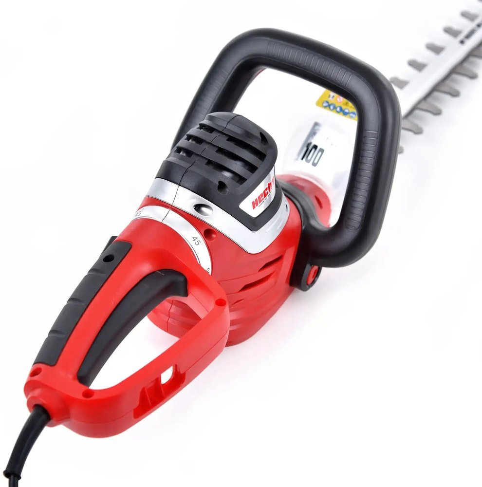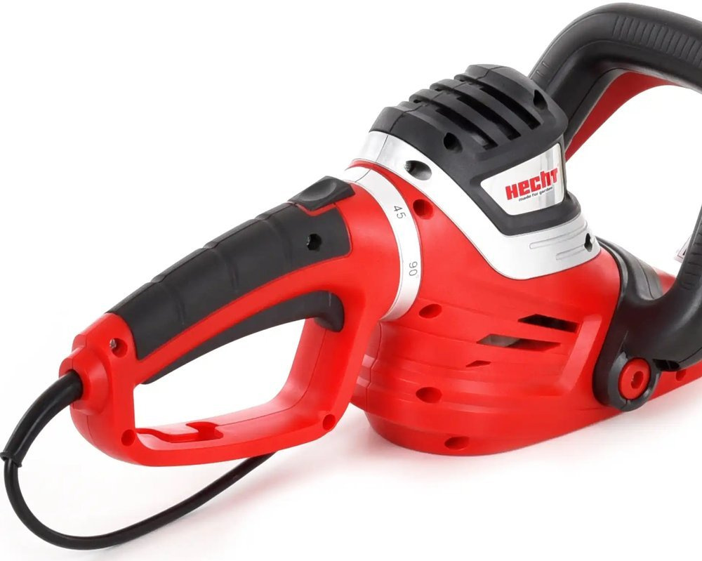 HECHT 610- Sekator nożyce do żywopłotu HECHT 610 to urządzenie wyposażone w silnik elektryczny o mocy 600 W. Warto dodać, że sprzęt doskonale nadaje się do drobnych prac na działce, w domowym ogrodzie. Wyróżnia się lekkością, ma małe gabaryty, jego obsługa nie powinna więc sprawiać problemów. Maksymalna średnica cięcia sekatora do żywopłotu Hecht 610 wynosi 24 mm.Sekator 610 idealnie nadaje się do cięcia żywopłotów o max. średnicy gałęzi 24 mm. Eksploatacja urządzenia ważącego tylko 3,1 kg jest bardzo prosta i bezpieczna dzięki podwójnemu nożowi z ogranicznikiem, dwuręcznemu włącznikowi bezpieczeństwa, zabezpieczeniu przed wyrwaniem kabla oraz osłonie na ręce. Sekator dodatkowo wyposażony jest w obrotową rękojeść. W wyposażeniu znajduje się także osłona prowadnicy  która umożliwia jej przechowywanie pomiędzy cięciami.