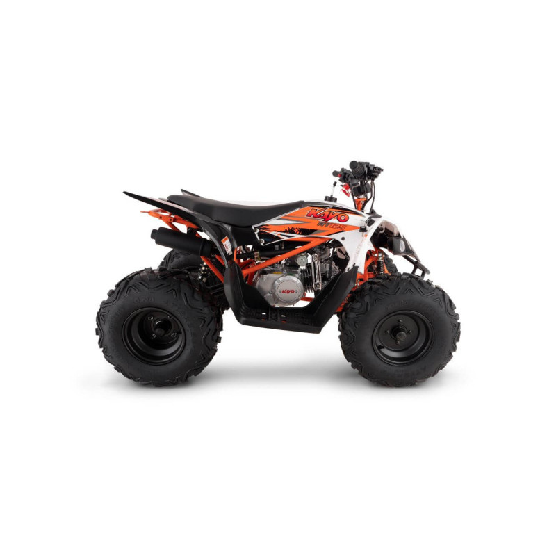 KAYO AT125 to idealny sprzęt dla dzieci od 7 lat, które już miały okazję złapać bakcyla jazdy, i dla nastolatków, którzy szukają świetnej zabawy na świeżym powietrzu. To quad, który sprawdzi się zarówno na spokojnych trasach, jak i w nieco bardziej wymagających miejscach – zawsze z uśmiechem na twarzy młodego ridera.