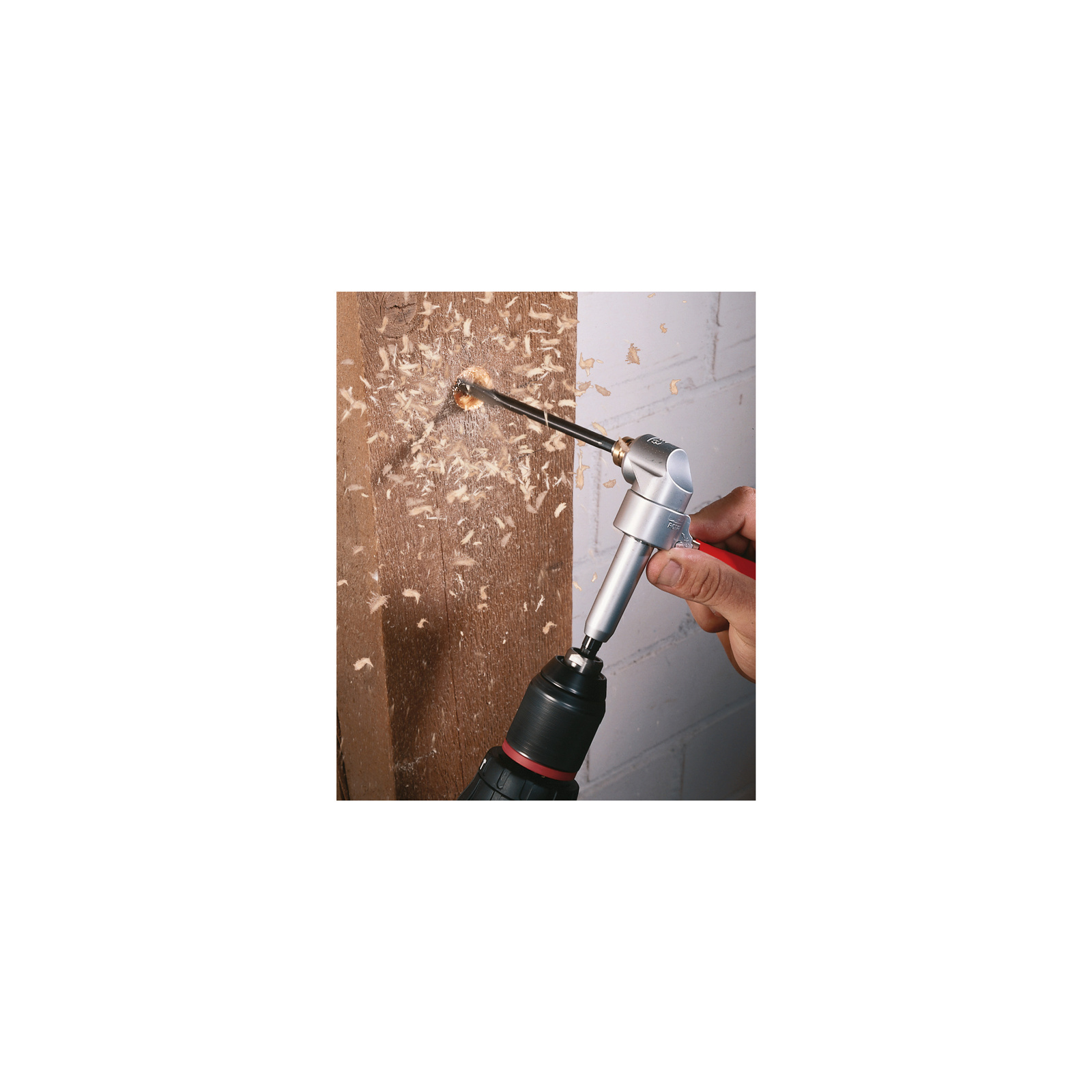 Sześciokątny uchwyt wiertła 1⁄4˝: Magnetyczny, mechanizm blokowania wiertła, kąt 90° względem wałka, pasuje zarówno do końcówek wkrętakowych i wierteł z chwytami standardowymi 25 mm (C 6.3), jak i końcówkami kulistymi (E 6.3).