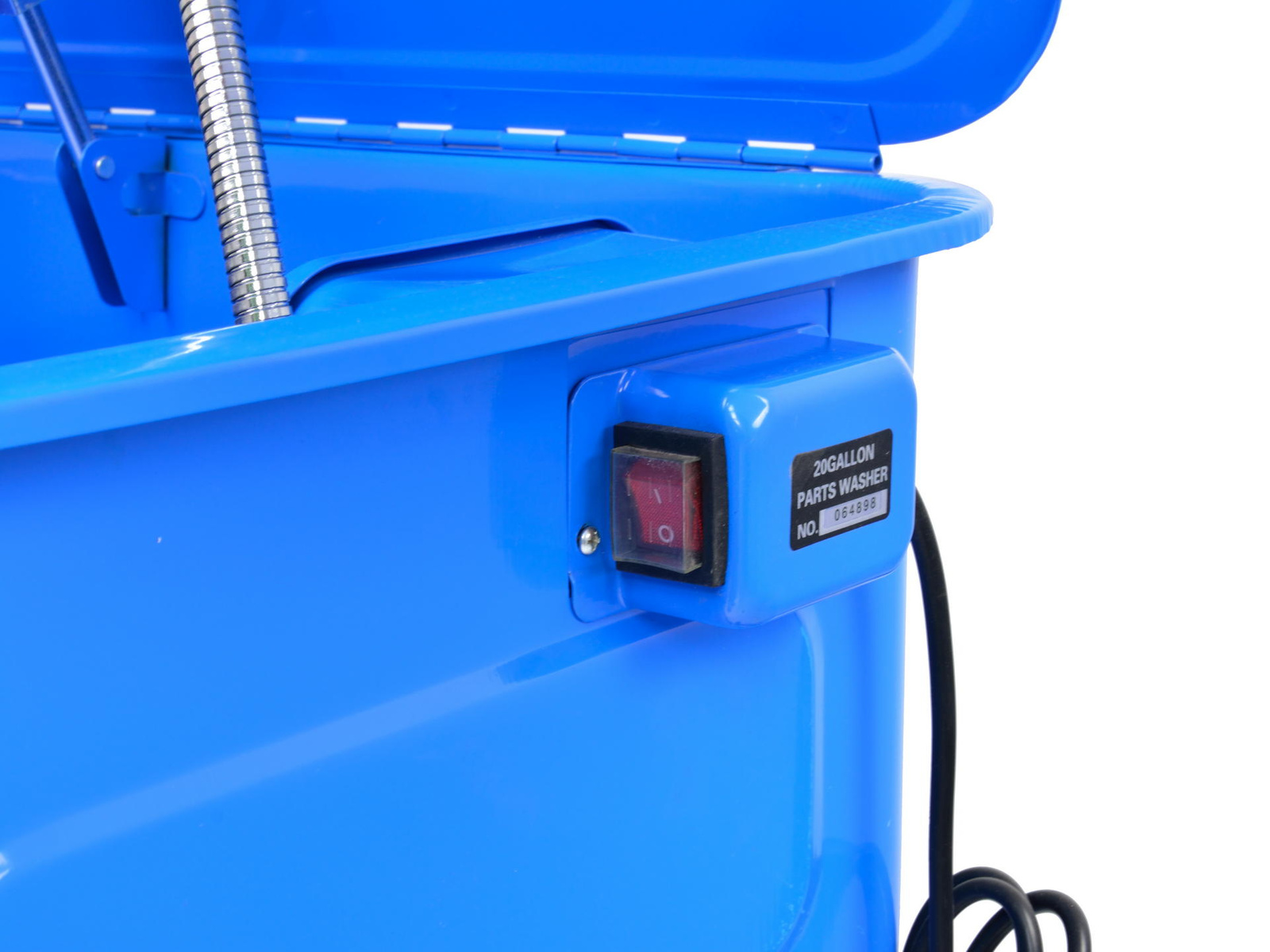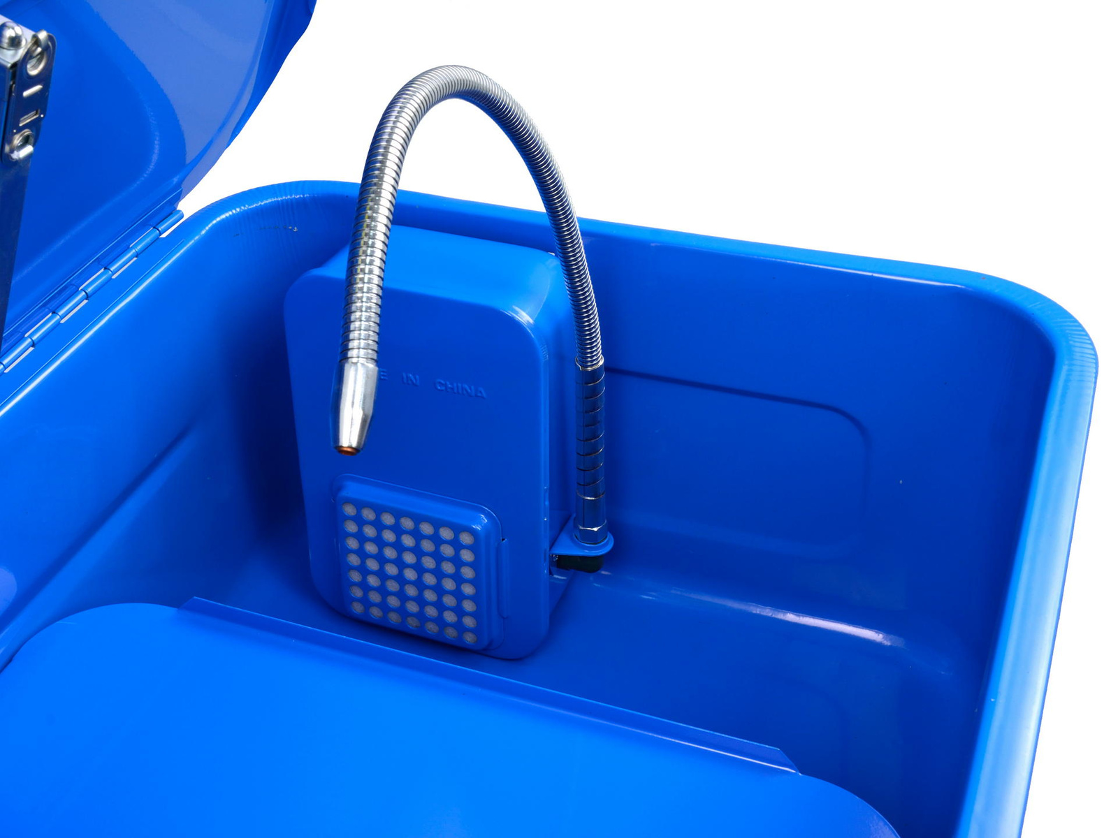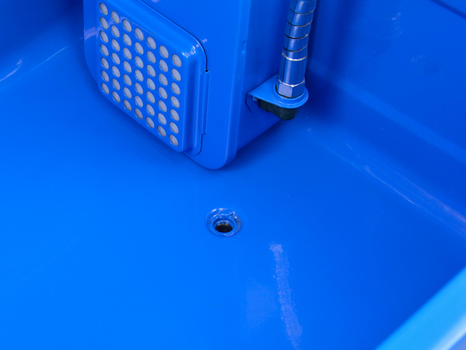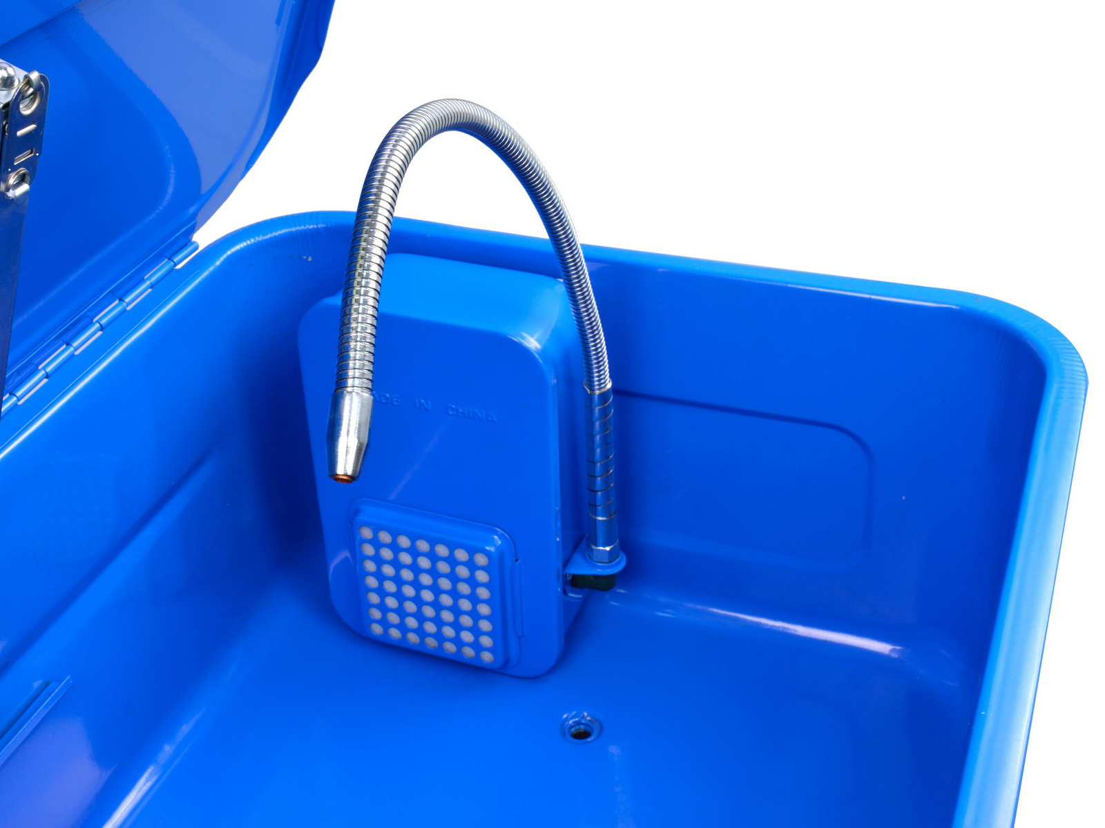 Profesjonalna myjka warsztatowa stacjonarna elektryczna o pojemności 80 litrów Cechy produktu pojemność wanny 80 litrów dopuszczalna ilość środka czyszczącego 50 litrów wyjmowana półka na której można położyć myty element solidna pokrywa z automatyczną podporą elektryczna pompa 230V wydajność pompy 10-12 litrów / min wymiary całkowite wewnątrz 710 x 480 x 260 mm półka pod wanienką 680 x 420 mm 4 stabilne, lakierowane, metalowe nogi metalowa elastyczna rurka, którą płynie środek chemiczny o dł. 50 cm korek spustowy na spodzie wanny