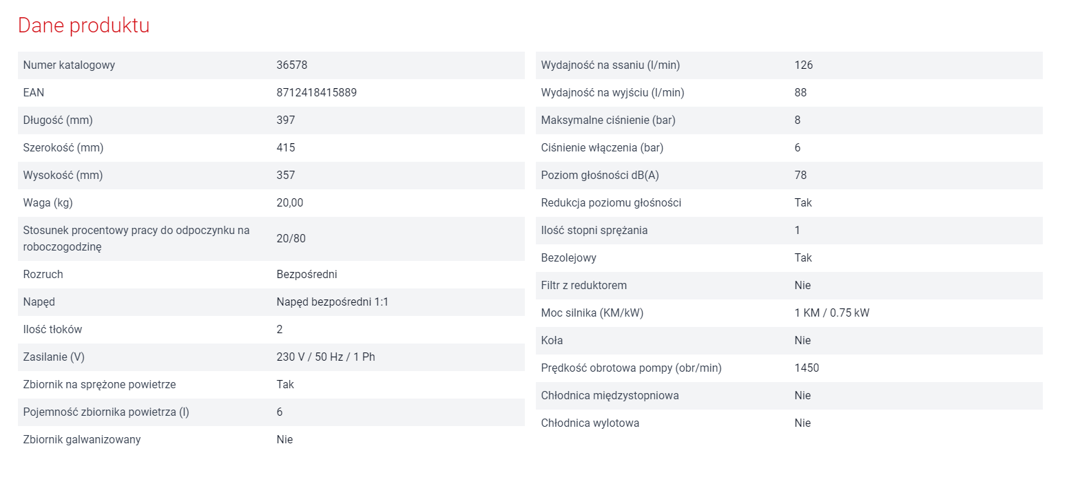 Wykorzystanie silnika indukcyjnego oraz obniżona prędkość obrotowa znacznie zmniejszają natężenie hałasu emitowanego przez kompresor, które wynosi jedynie 78 dB(A).
