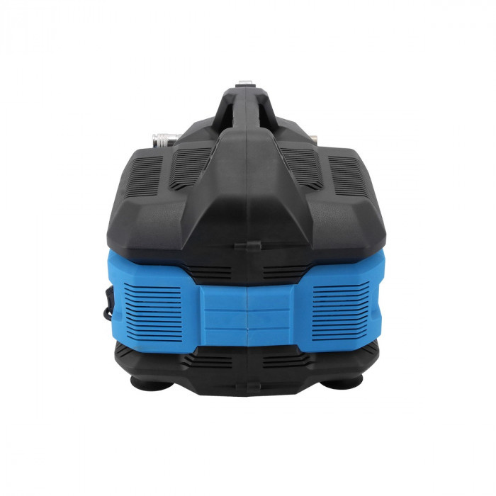 Sprężarka jest lepiej przystosowana do nieco intensywniejszej pracy, a bezolejowy blok tłokowy zapewnia czyste sprężone powietrze, niezbędne w wielu zastosowaniach (np. przedmuch elektroniki, niektóre prace instalacyjne, malowanie i lakierowanie z użyciem aerografu).