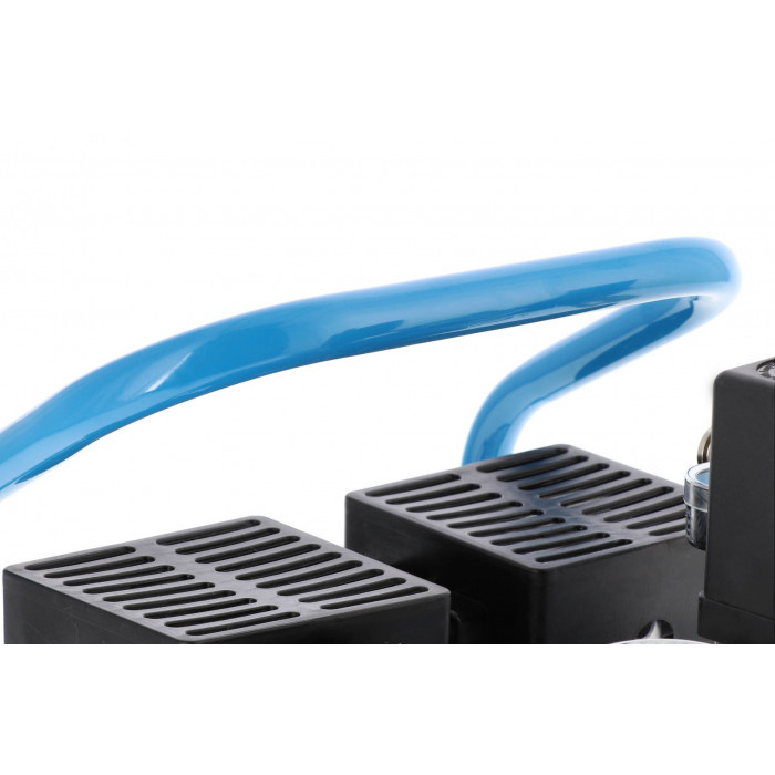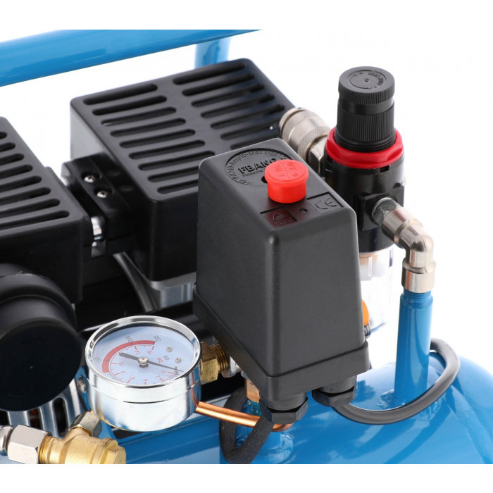 Kompresor cichy Airpress L 6-95 o mocy 0.71 KM oraz wydajności efektywnej 48 litrów na minutę. Sprężarka świetnie sprawdza się w pracy z zszywarkami pneumatycznymi. Bezolejowa budowa niweluje potrzebę cyklicznej wymiany czynnika smarującego. Kompresor Airpress L 6-95 pracuje w obniżonym tempie do 1440 obr/min, dzięki czemu cykl pracy ulega wydłużeniu. Kompresor posiada wygodny uchwyt, co w połączeniu z niską wagą i niewielkimi gabarytami znacznie ułatwia transport urządzenia.