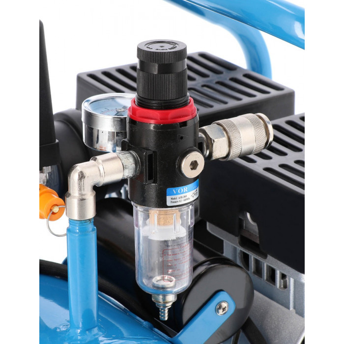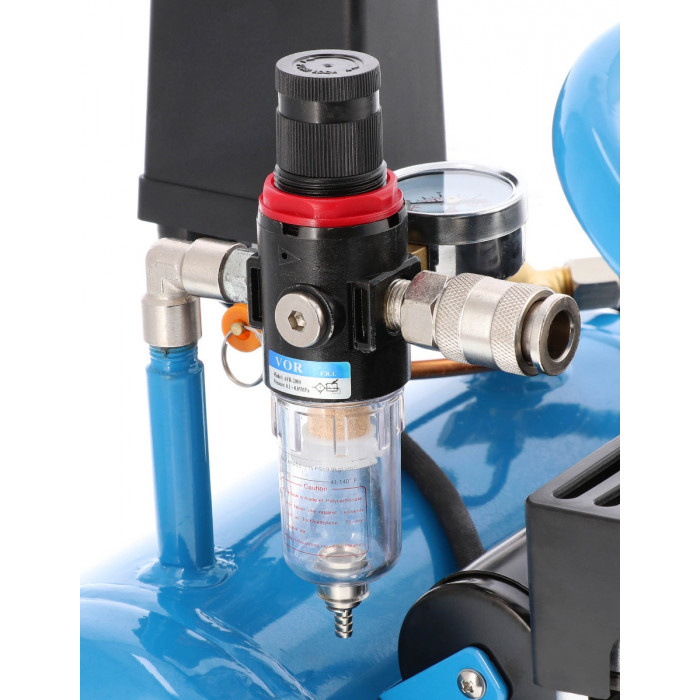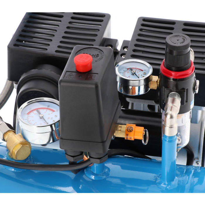 W wyposażeniu Kompresora Airpress L 6-95 znajdziesz manometr, szybkozłącze pneumatyczne, filtroreduktor oraz wyłącznik ciśnieniowy.