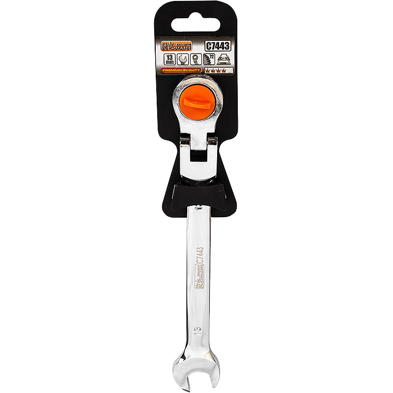 • Klucz płasko-oczkowy przegubowy z grzechotką.