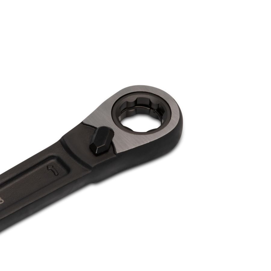 W końcu rękojeści klucza znajduje się 2-kierunkowa grzechotka służąca do napędu nasadek przelotowych (PASS-THRU), które mają pasujący do niego uchwyt 6-wypustowy. Klucz grzechotkowy wyposażony jest w wygodny przełącznik kierunku pracy.