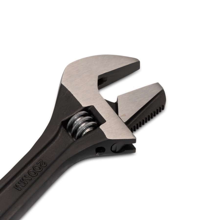 Klucz nastawny wyposażony jest w odwracalną ruchomą szczękę ze specjalnym profilem pozwalającym chwytać nim rury. Można go więc użyć nie tylko do montażu/demontażu śrub z lub nakrętek, ale także do łączenia lub rozłączania rur metalowych. Co ważne, ma on ślimakową regulację rozstawu szczęk o dużym zakresie do 30 mm.