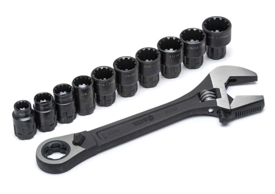 SATA ZESTAW 11 ELEMENTÓW - KLUCZ NASTAWNY 8" Z FUNKCJĄ KLUCZA DO RUR ST09000