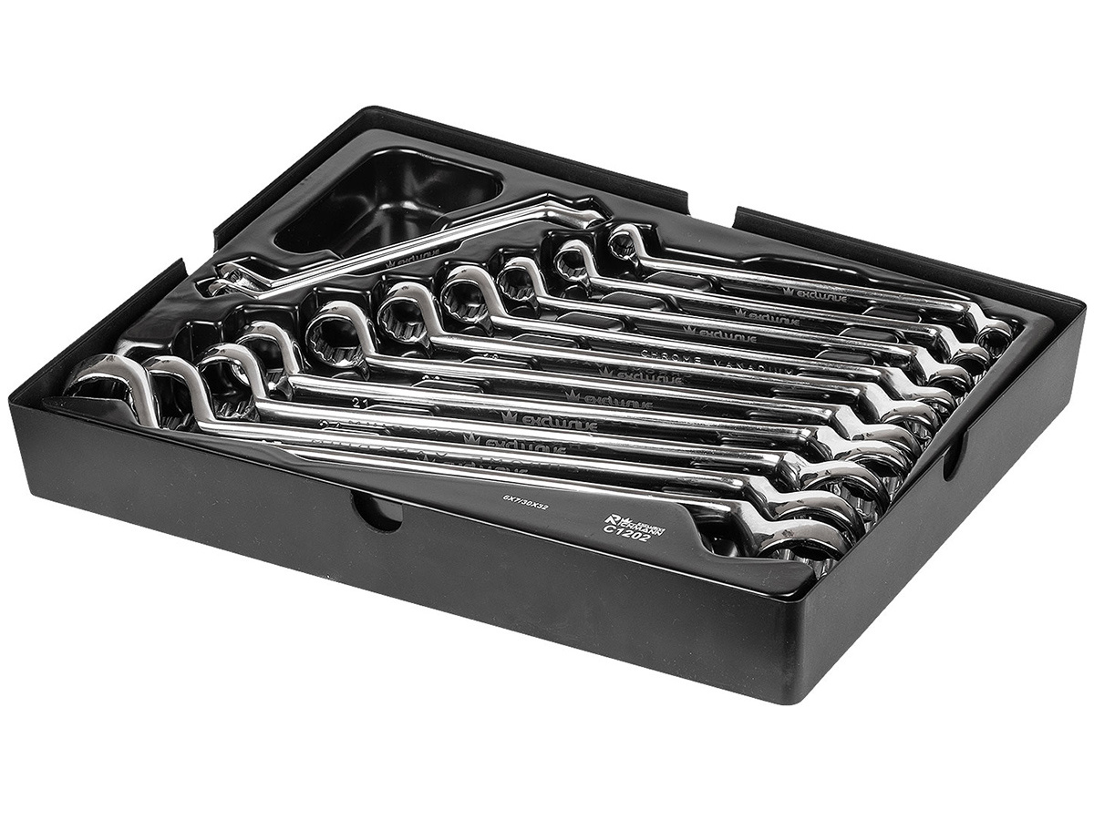 - Zestaw zawiera rozmiary [mm]: 6x7, 8x9, 10x11, 12x13, 14x15, 16x17, 18x19, 20x22, 21x23, 24x27, 25x28, 30x32