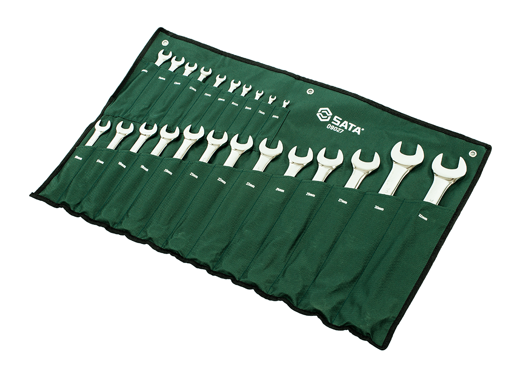 Zestaw kluczy płasko-oczkowych Sata S09027 to praktyczne narzędzia, któr ułatwią wiele prac warsztatowych i mechanicznych. To niezbędnik wyposażenia każdego warsztatu.