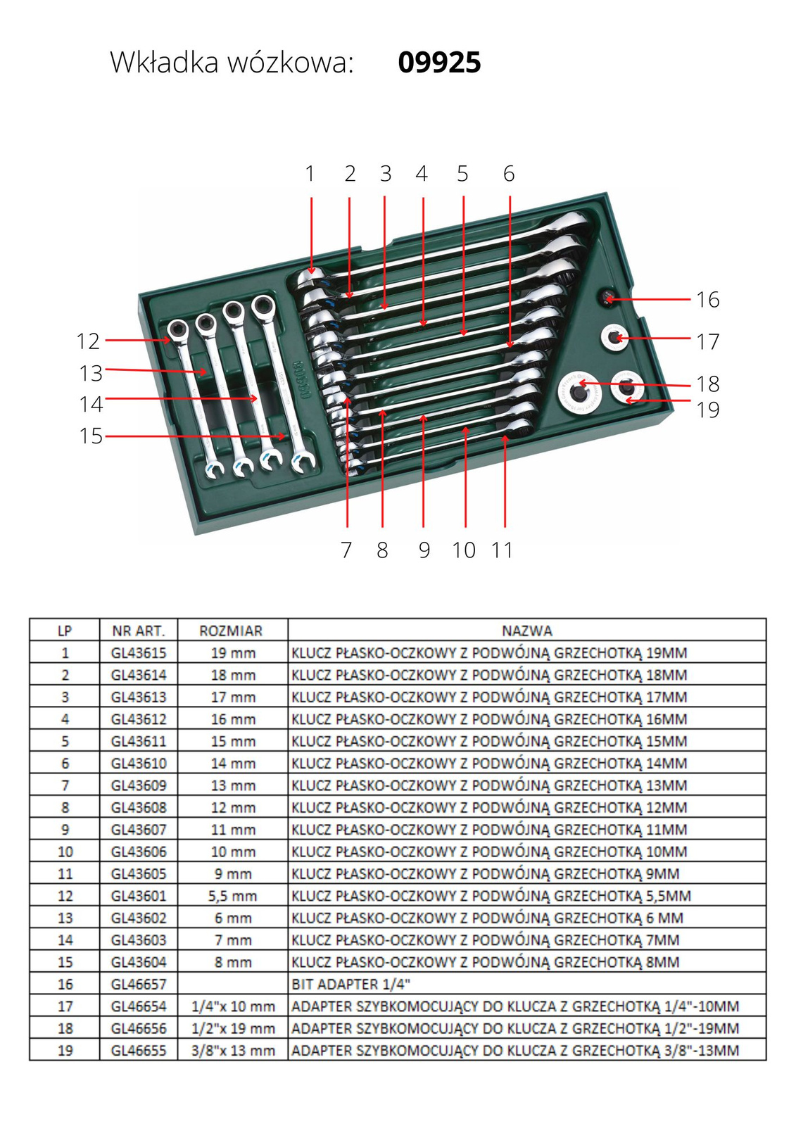 SATA ZESTAW 19 KLUCZY PŁASKO-OCZKOWYCH Z PODWÓJNĄ GRZECHOTKĄ GL09925