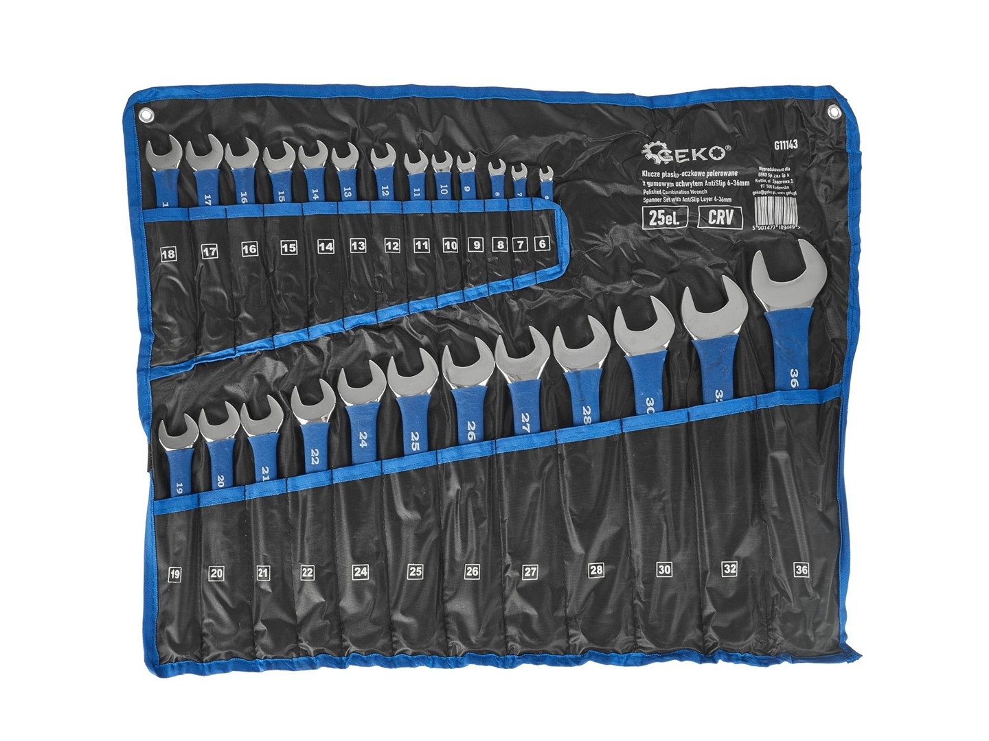 GEKO Klucze płasko-oczkowe z gumowanym uchwyemt 6-36mm 25 elementów G11143