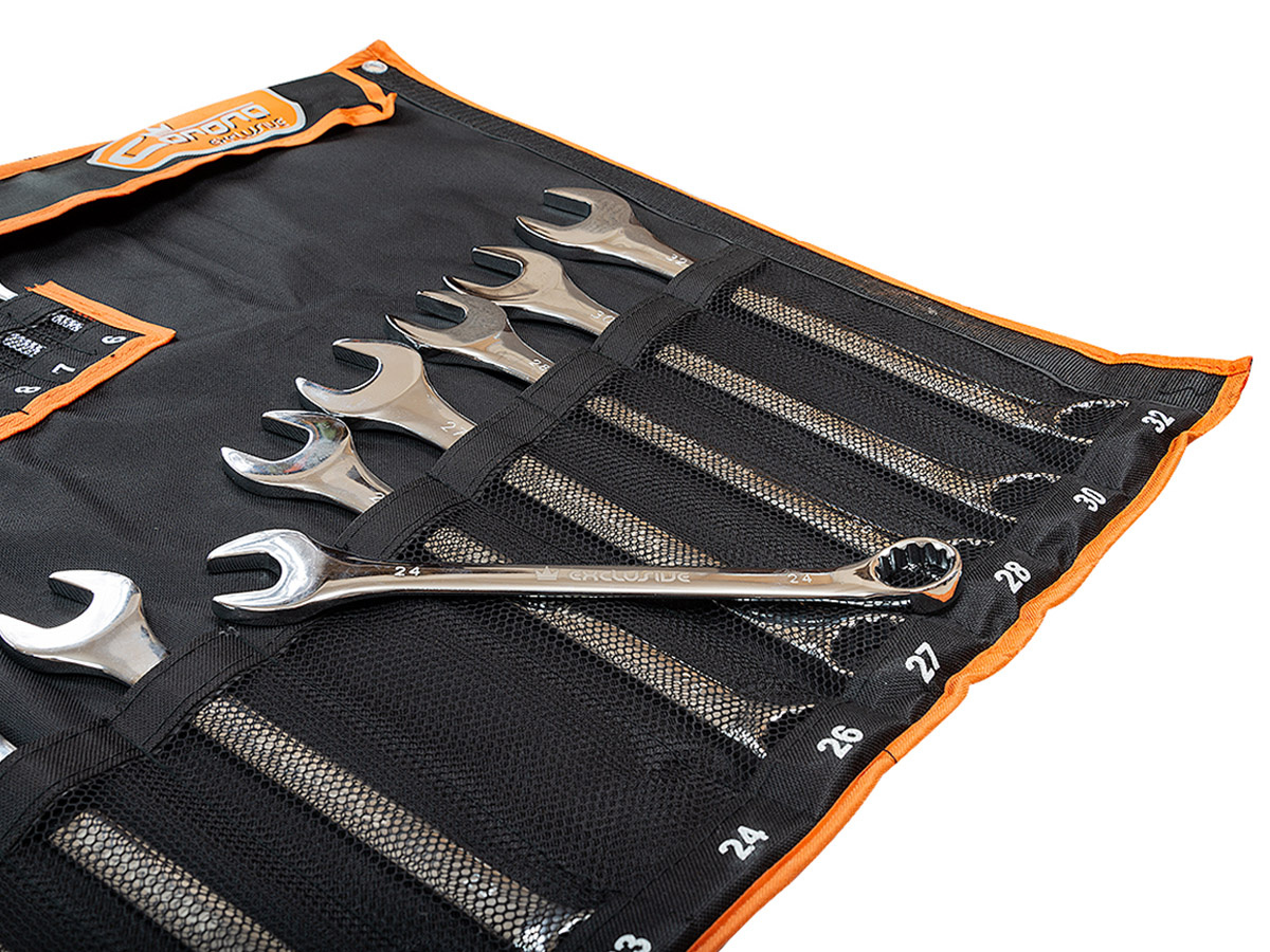 - Klucze płasko oczkowe: 6, 7, 8, 9, 10, 11, 12, 13, 14, 15, 16, 17, 18, 19, 20, 21, 22, 23, 24, 26, 27, 28, 30, 32 mm