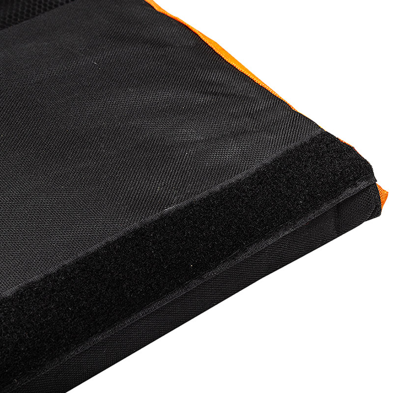 Całość umieszczona w sztywnej płachcie zamykanej za pomocą mocnego rzepu z uchwytem transportowym.