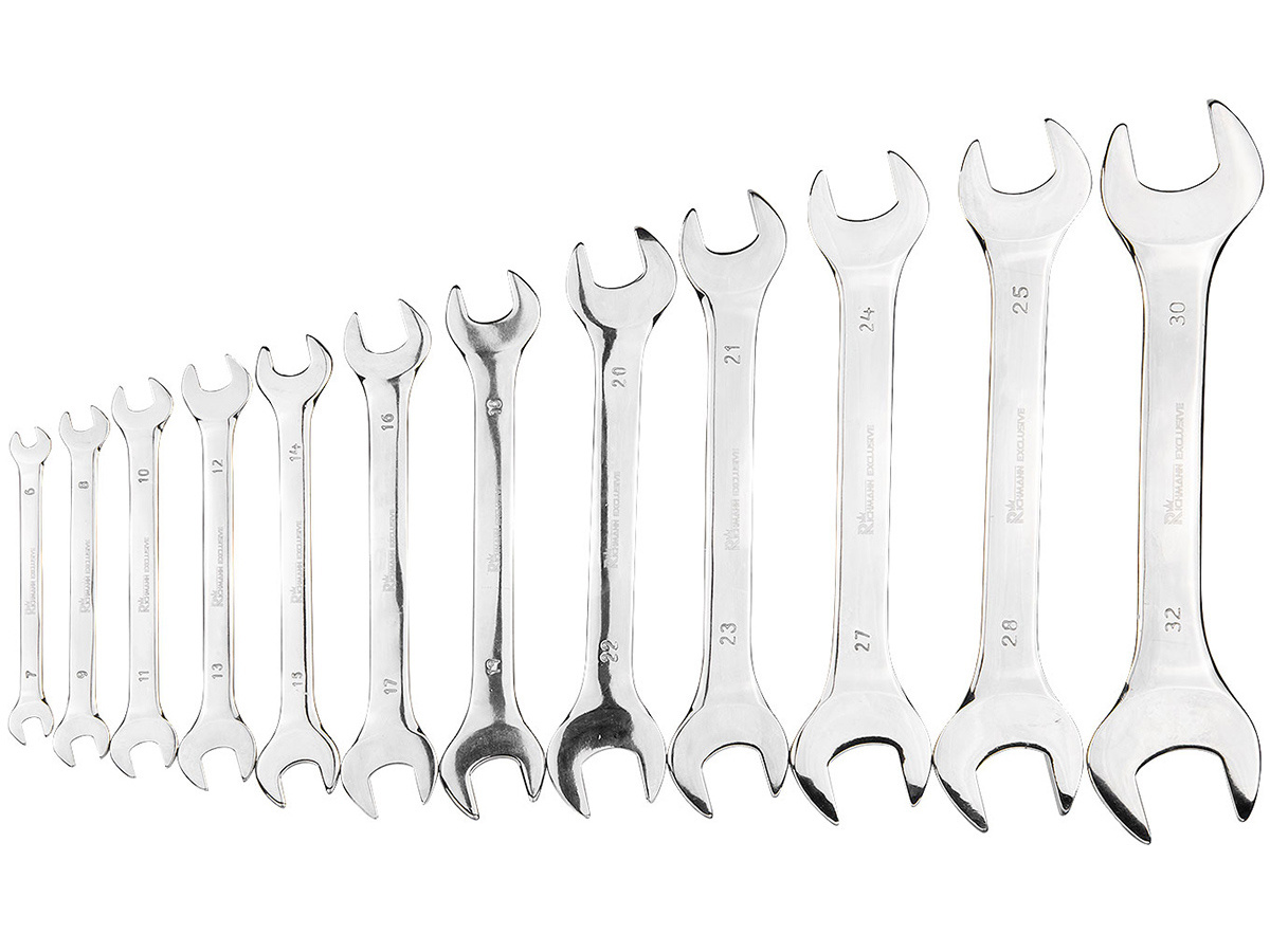 - Zestaw zawiera rozmiary [mm]: 6x7, 8x9, 10x11, 12x13, 14x15, 16x17, 18x19, 20x22, 21x23, 24x27, 25x28, 30x32