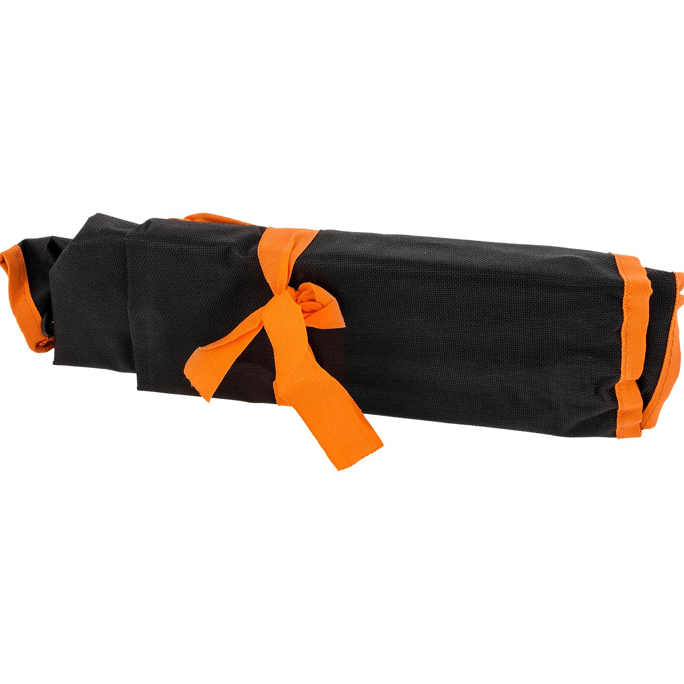 Zestaw umieszczony w zwijanej płachcie wiązanej paskami ułatwiającej przechowywanie i transport.