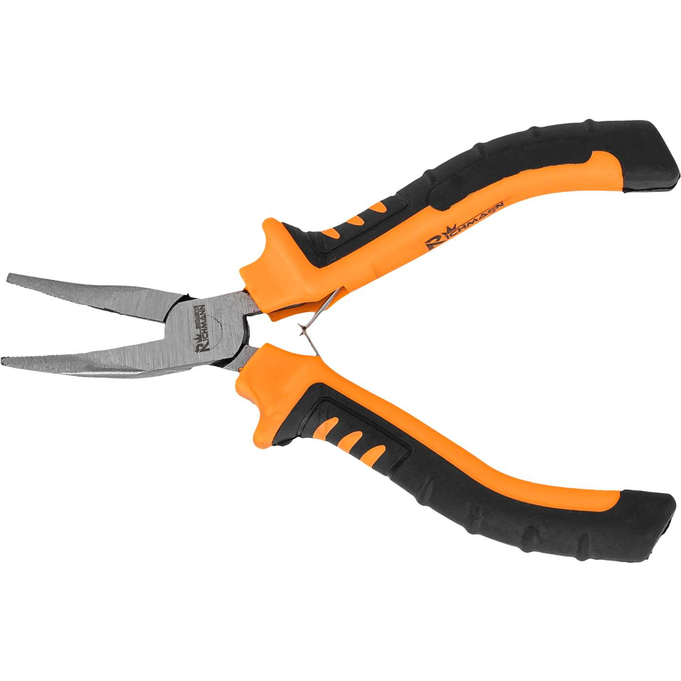 Szczypce półokrągłe precyzyjne wygięte o długości całkowitej 125 mm.