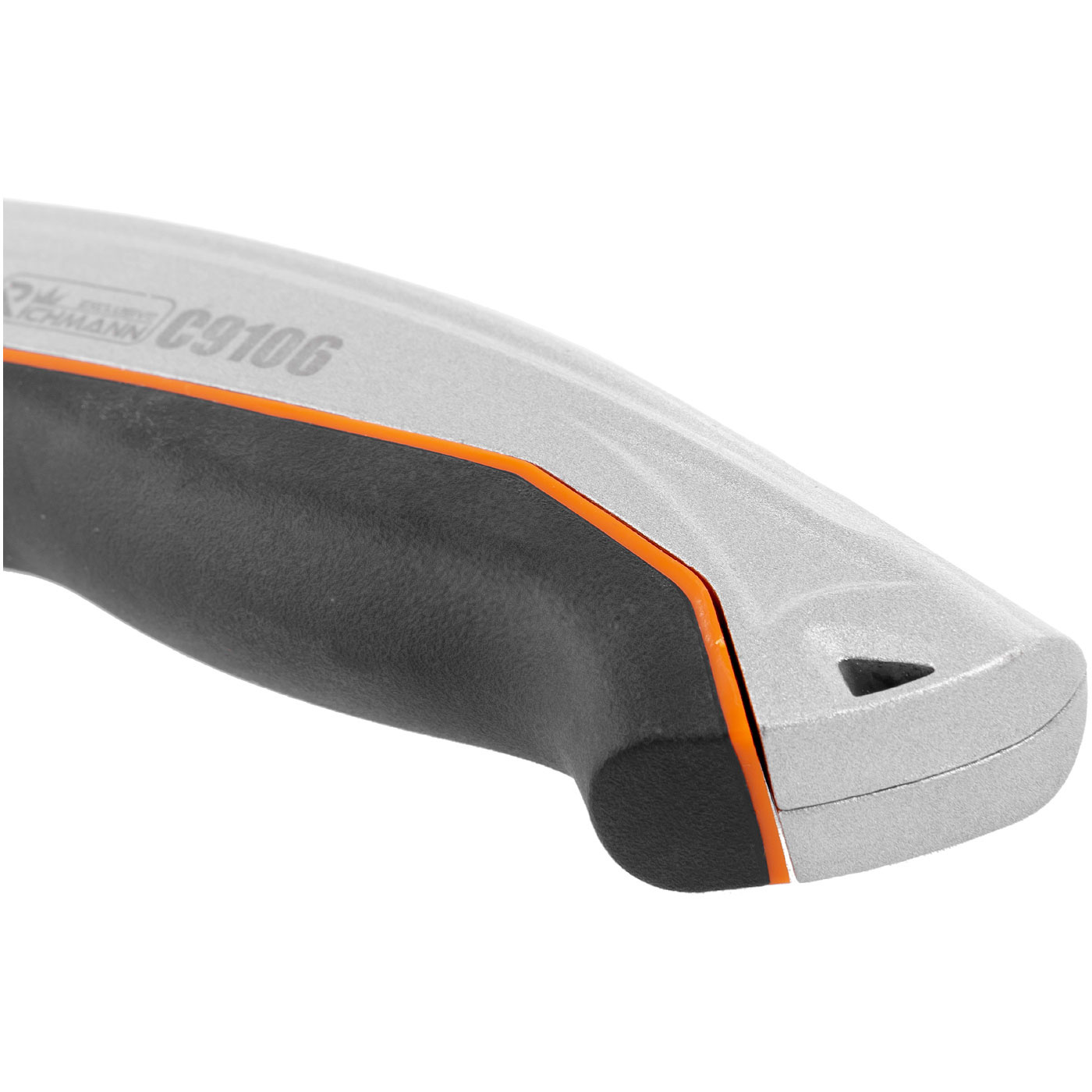 Rękojeść pokryta antypoślizgową gumą z dodatkową gumą na czole ostrza.