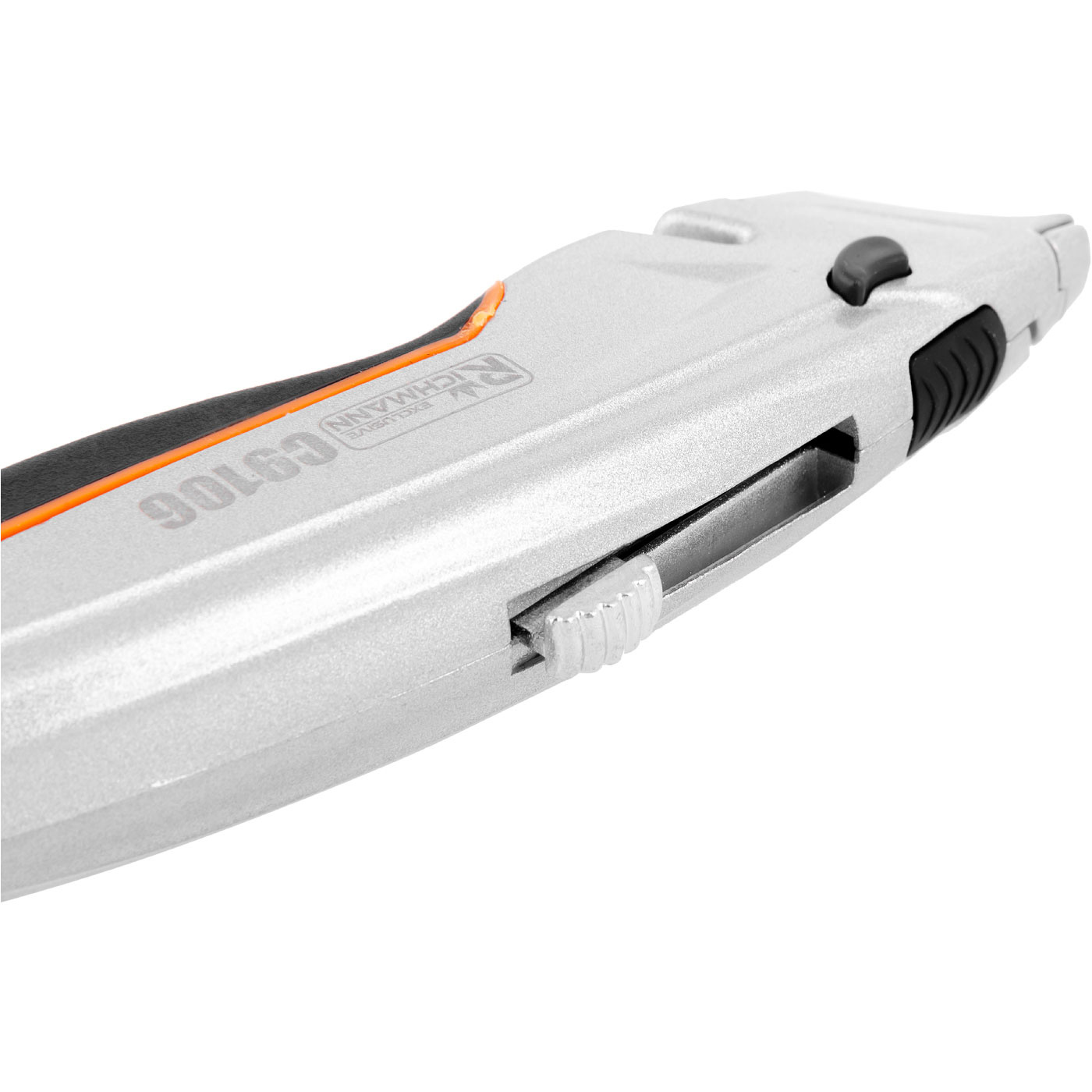 Magazynek mieszczący 5 sztuk ostrzy znajduje się w podstawie noża i jest blokowany za pomocą przycisku znajdującym się na grzbiecie nożyka.