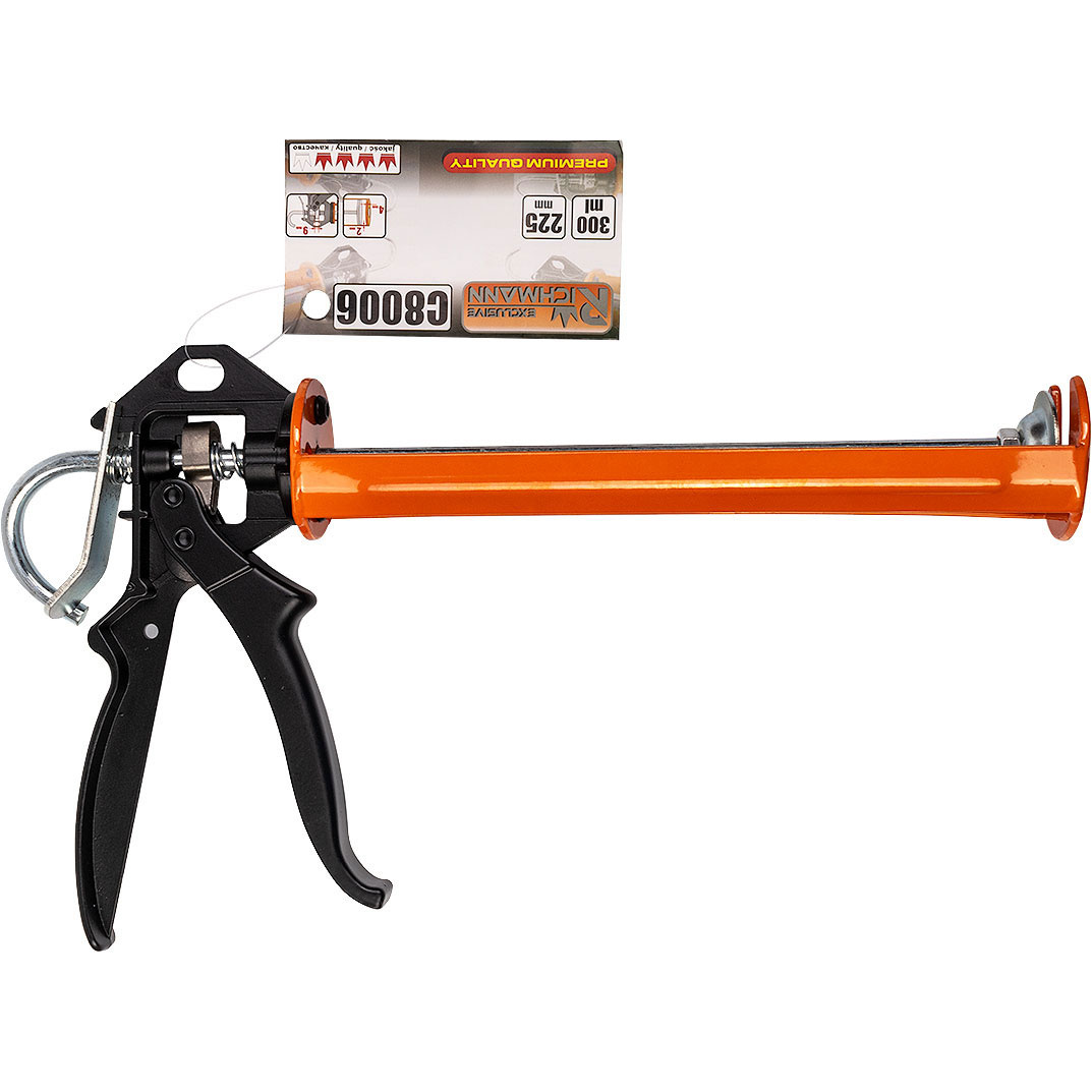 Wzmocniony wyciskacz o długości 225 mm do silikonu w tubach 300 ml.