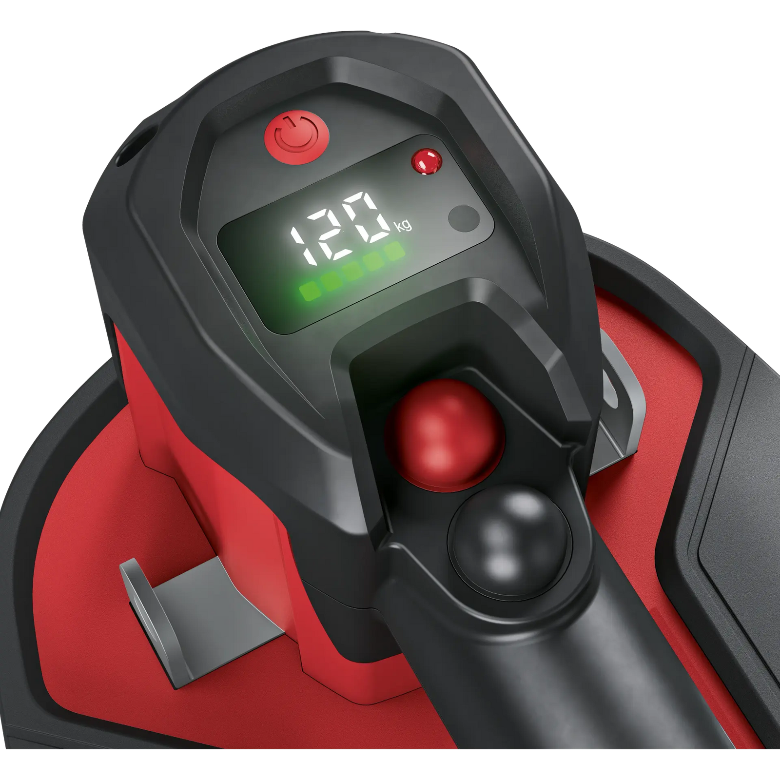 • Bezpieczeństwo pracy ma najwyższy priorytet. Podnośnik podciśnieniowy jest wyposażony w funkcję automatycznego odsysania, a cyfrowy wyświetlacz stale dostarcza informacji o aktualnym podciśnieniu