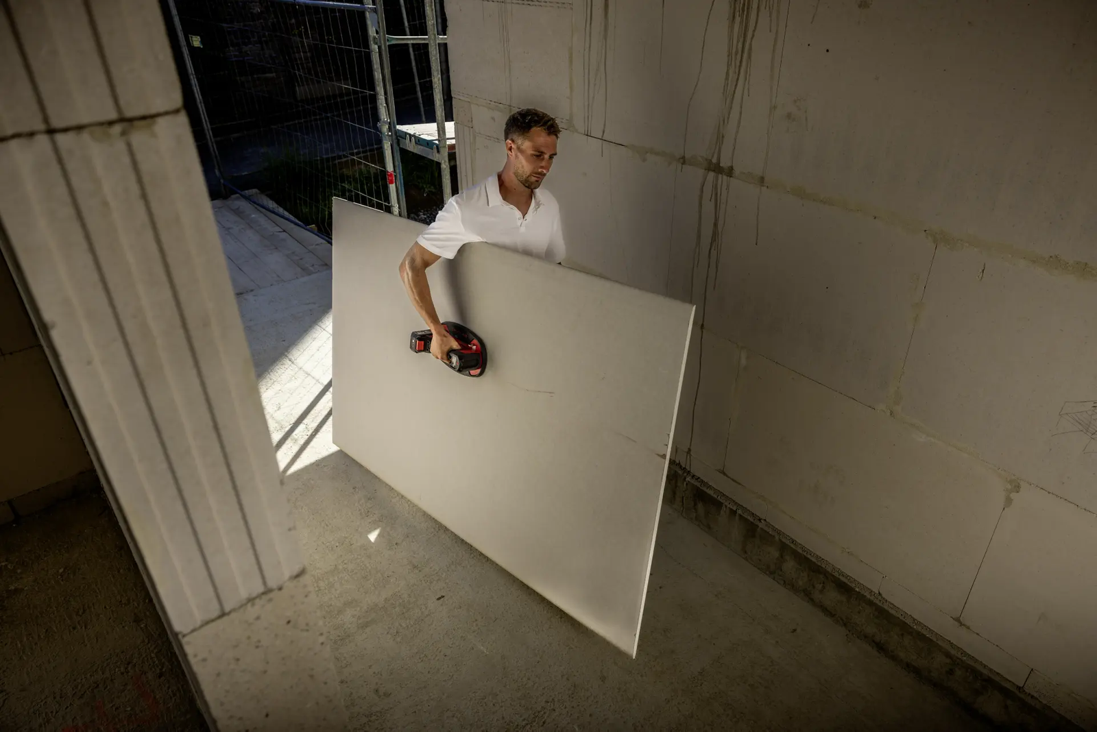 • Dzięki ergonomicznie zaprojektowanemu, mobilnemu, elektrycznemu podciśnieniowemu próżniowemu można bez wysiłku podnosić, przenosić i precyzyjnie umieszczać niemal każdy przedmiot. Podnośnik podciśnieniowy jest idealny do różnych materiałów, takich jak płytki, płyty gipsowo-kartonowe, bloczki betonowe, szkło, metale, meble i duże urządzenia elektryczne. Jego potężna funkcjonalność zapewnia efektywne i niezawodne przenoszenie ciężkich przedmiotów