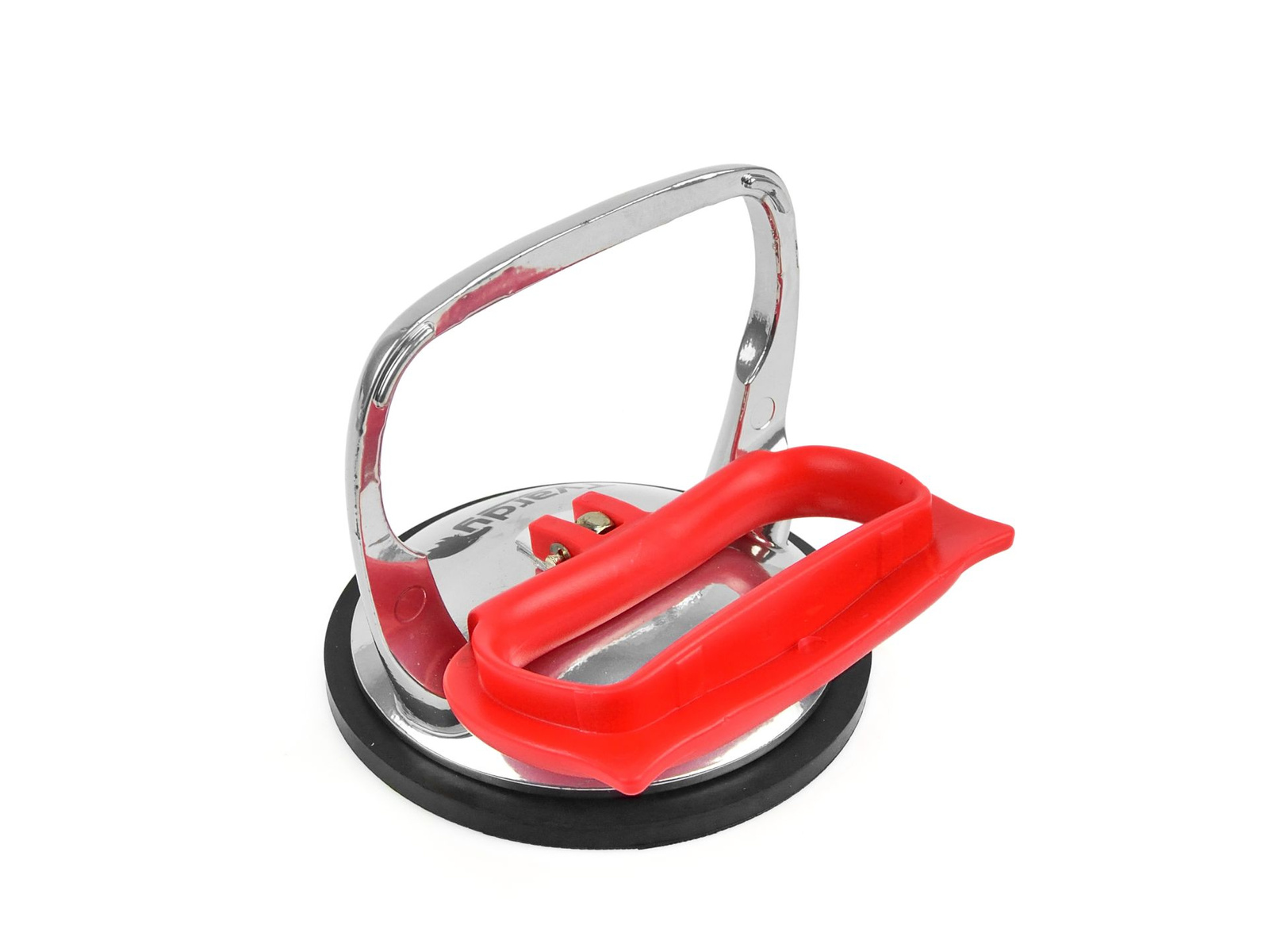 Uchwyt przyssawka aluminiowa przeznaczona do przenoszenie elementów o płaskiej i gładkiej powierzchni takich jak np. szyby, okna, szyby samochodowe, arkusze blach, laminaty, płytki itp., których waga nie przekracza 60kg.