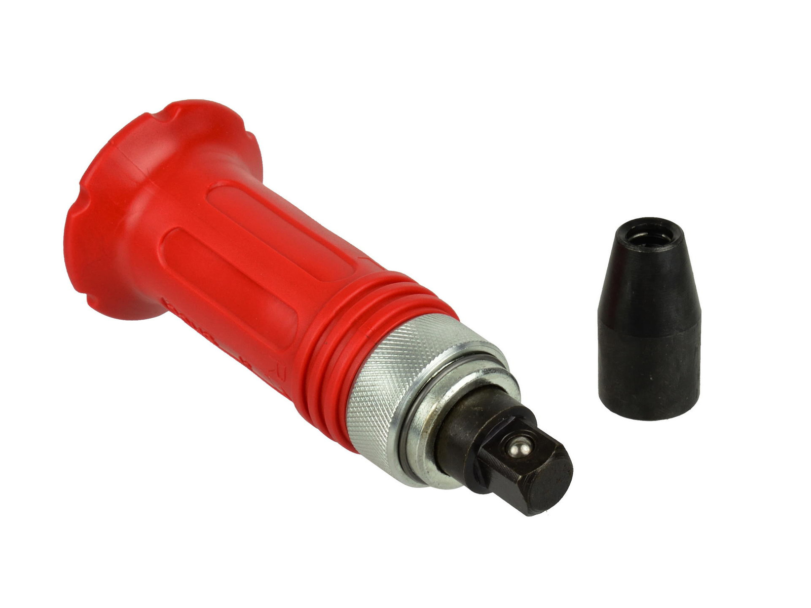 Wkrętak klucz udarowy 1/2" z dodatkową nasadką na bity. Wkrętak podczas uderzenia w niego młotkiem wytwarza ruch obrotowy, dzięki czemu znacznie ułatwia odkręcanie zapieczonych śrub, wkrętów i nakrętek. Wkrętak udarowy dzięki możliwości zamontowania na nim każdej nasadki na 1/2" staje się narzędziem przydatnym w każdym profesjonalnym warsztacie, ale również w przydomowym garażu. Metalowy trzpień zabezpieczony jest gumą zakończoną kołnierzem, który chroni naszą dłoń przed bolesnym uderzeniem młotkiem. Charakterystyka produktu obroty prawo / lewo solidna i wytrzymała konstrukcja przystosowany do nasadek na 1/2" obroty lewo / prawo ustawiamy poprzez wciśnięcie i obrócenie czopa gumowy kołnierz chroniący dłoń 6 bitów w zestawie Zawartość zestawu wkrętak udarowy bity krzyżowe: PH2 x 35mm - 2 sztuki, PH2 x 70mm - 1 sztuka bity płaskie: 6 x 35mm, 8 x 35mm, 8 x 70mmPotrzebujesz pomocy? Masz pytania?Zadaj pytanie a my odpowiemy niezwłocznie, najciekawsze pytania i odpowiedzi publikując dla innych.