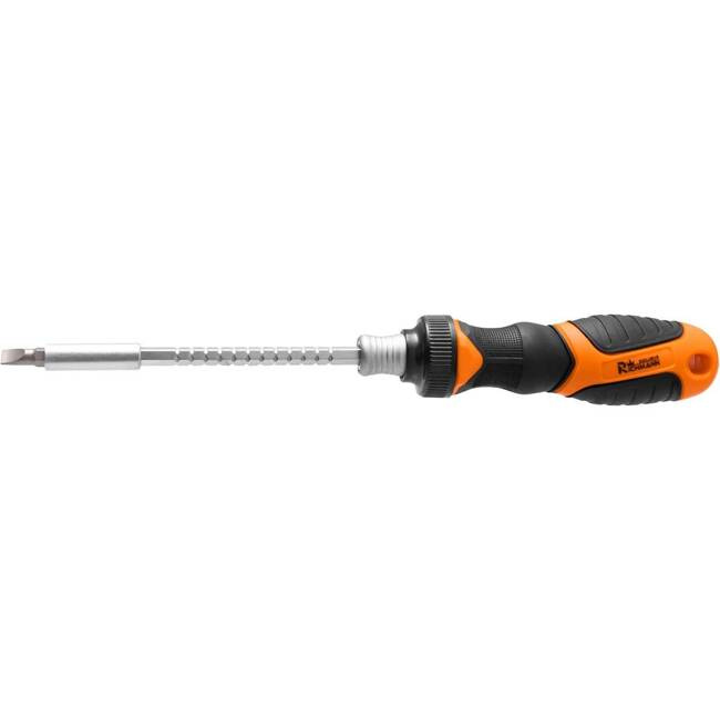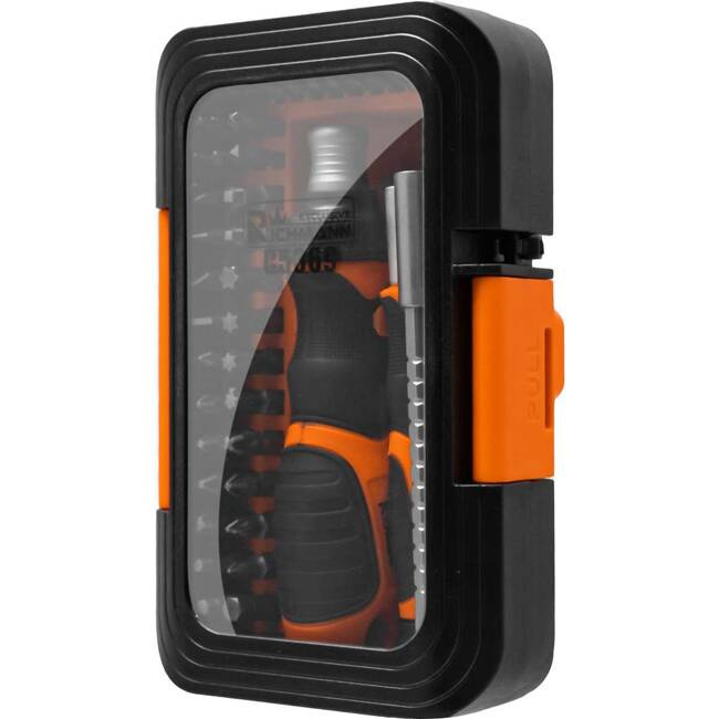 W zestawie znajduje się wkrętak grzechotkowy 140 mm dedykowany pod standardowe bity ¼” (6,35 mm) oraz wkrętak precyzyjny 120 mm z bitami 4 mm.