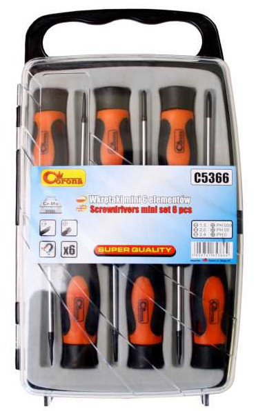 Zestaw 6 sztuk mini wkrętaków precyzyjnych.