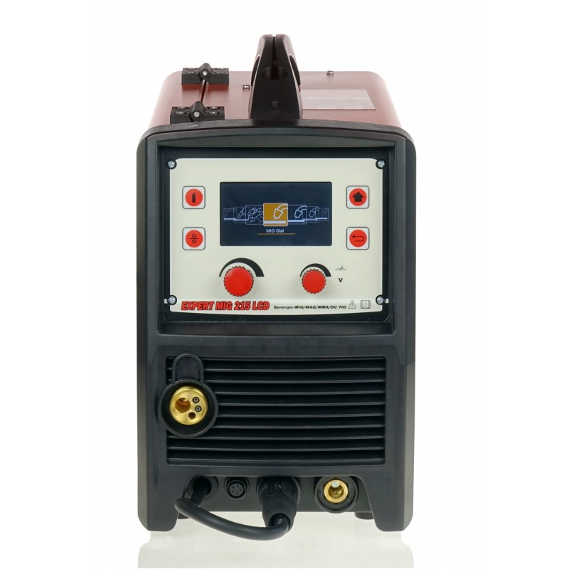EXPERT MIG 215 LCD MIG/TIG/MMA SYNERGIC ALU jest inwertorowym synergicznym półautomatem spawalniczym przeznaczonym do spawania łukowego metodą MIG/MAG, TIG LIFT, MMA oraz FLUX.