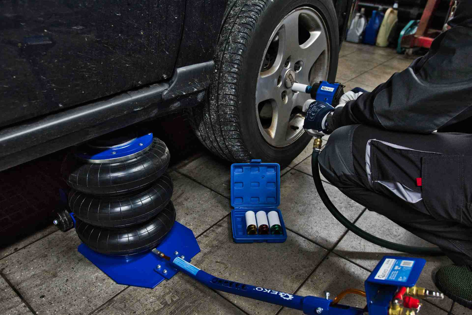 Podnośnik pneumatyczny poduszkowy czyli tzw. bałwanek. Maksymalny udźwig podnośnika wynosi 3000 kg.